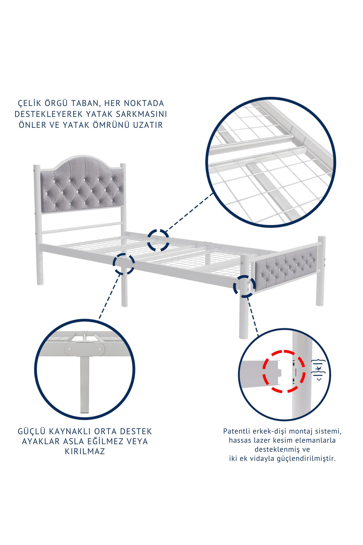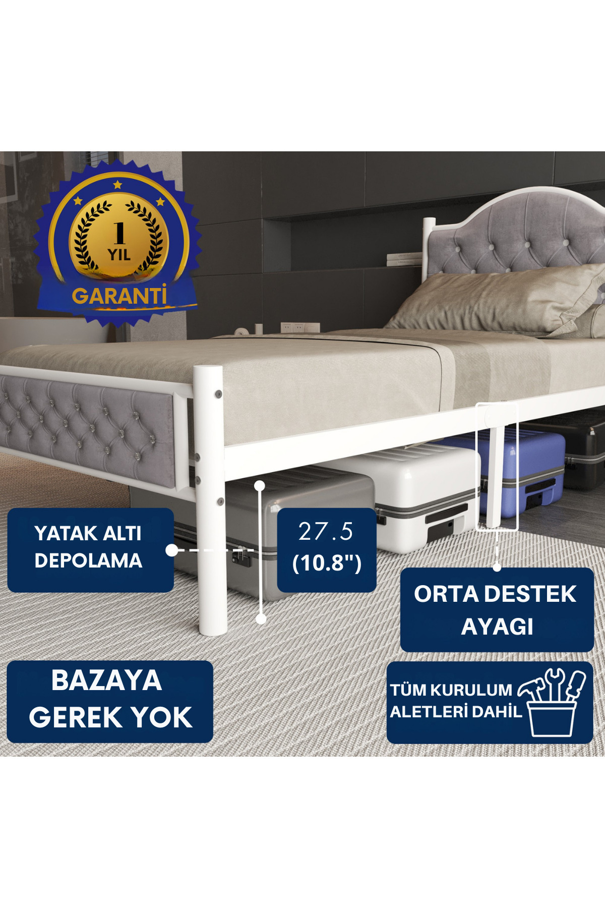 Çelik ızgara taban, yatağın ömrünü uzatırken, plastik kaplı ayaklar zemini çizilmelere karşı korur.