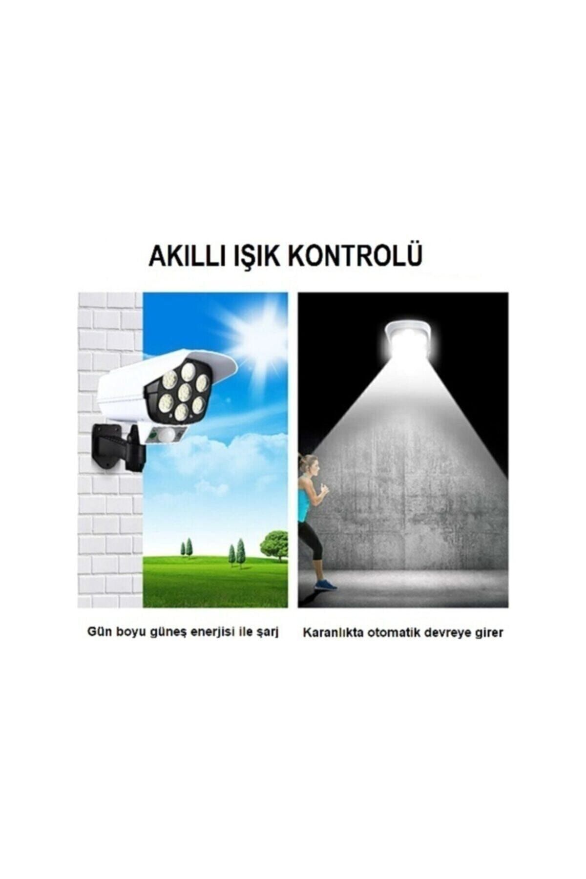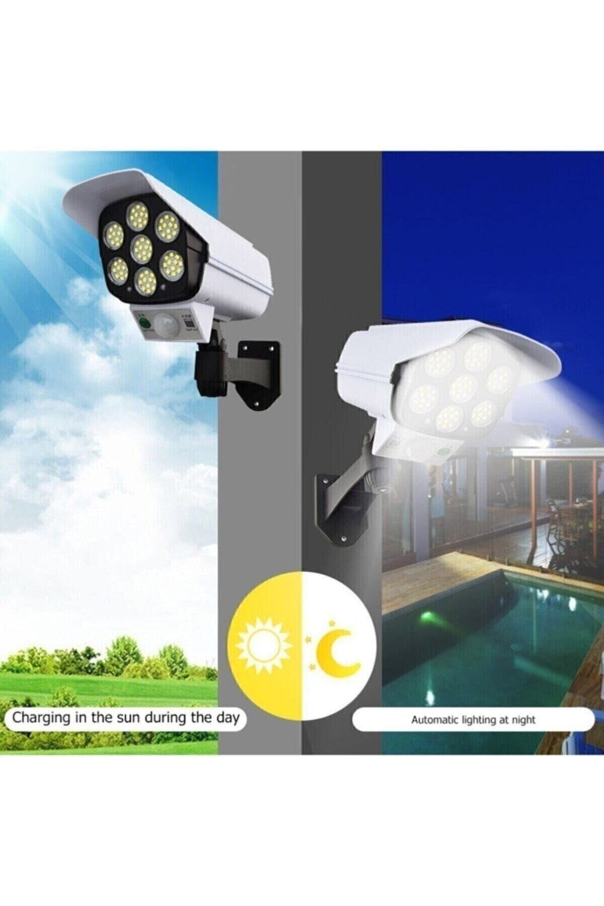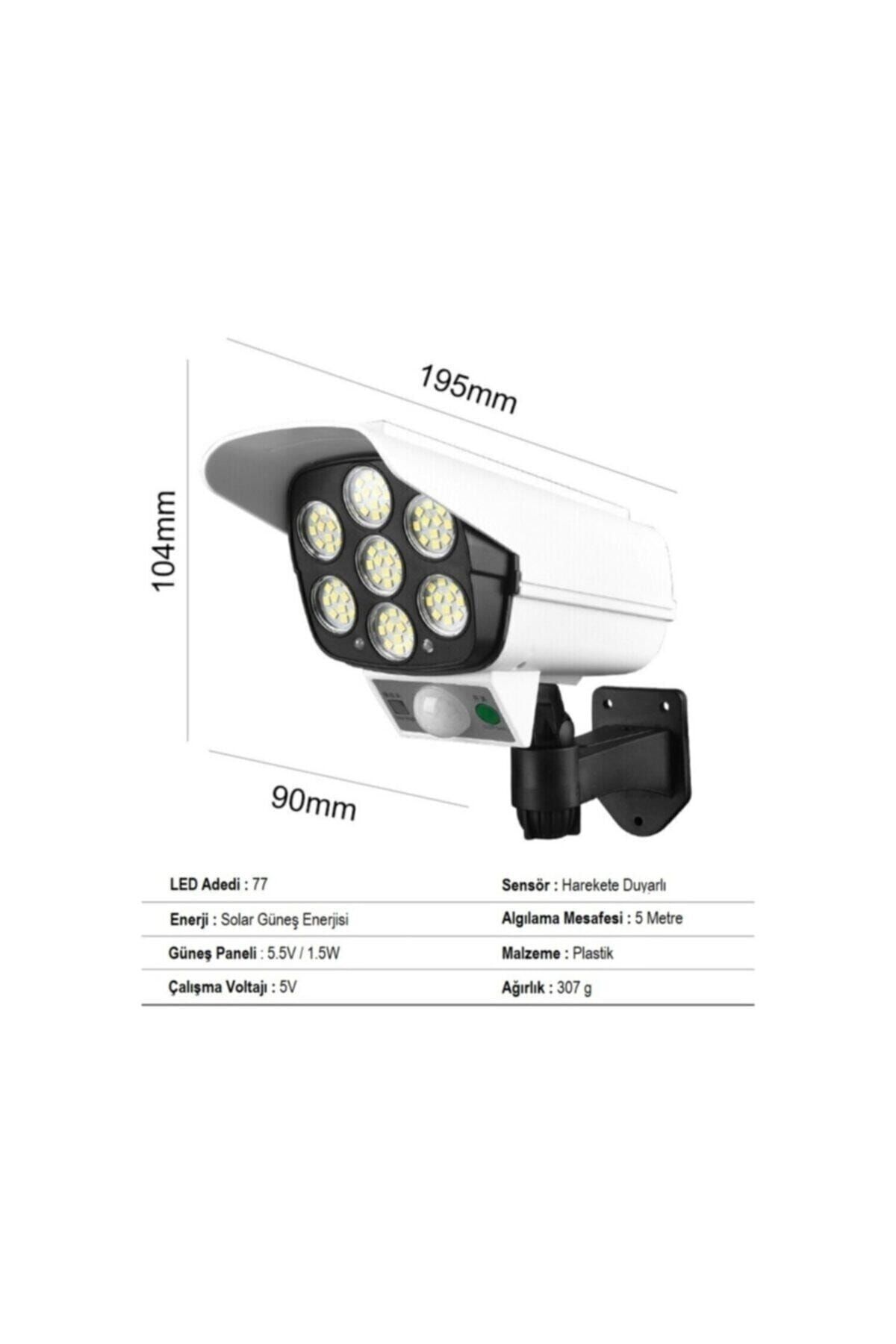 Solar Güneş Enerjili Hareket Sensörlü Güvenlik Kamerası Görünümlü 77 Led'li Dış Mekan Bahçe Garaj