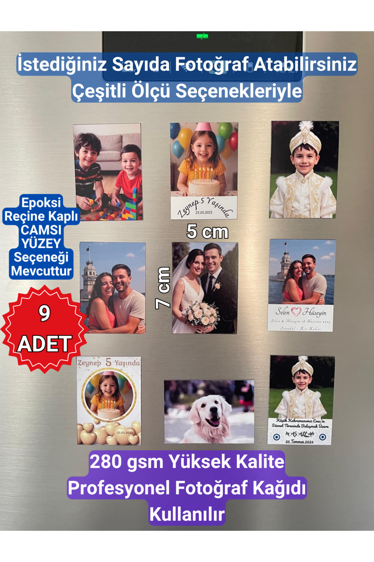 Fotoğrafçılarında kullandığı solma yapmayan yüksek kalite 280gsm fotoğraf kağıdının arkasına komple mıknatıs yapıştırılır.