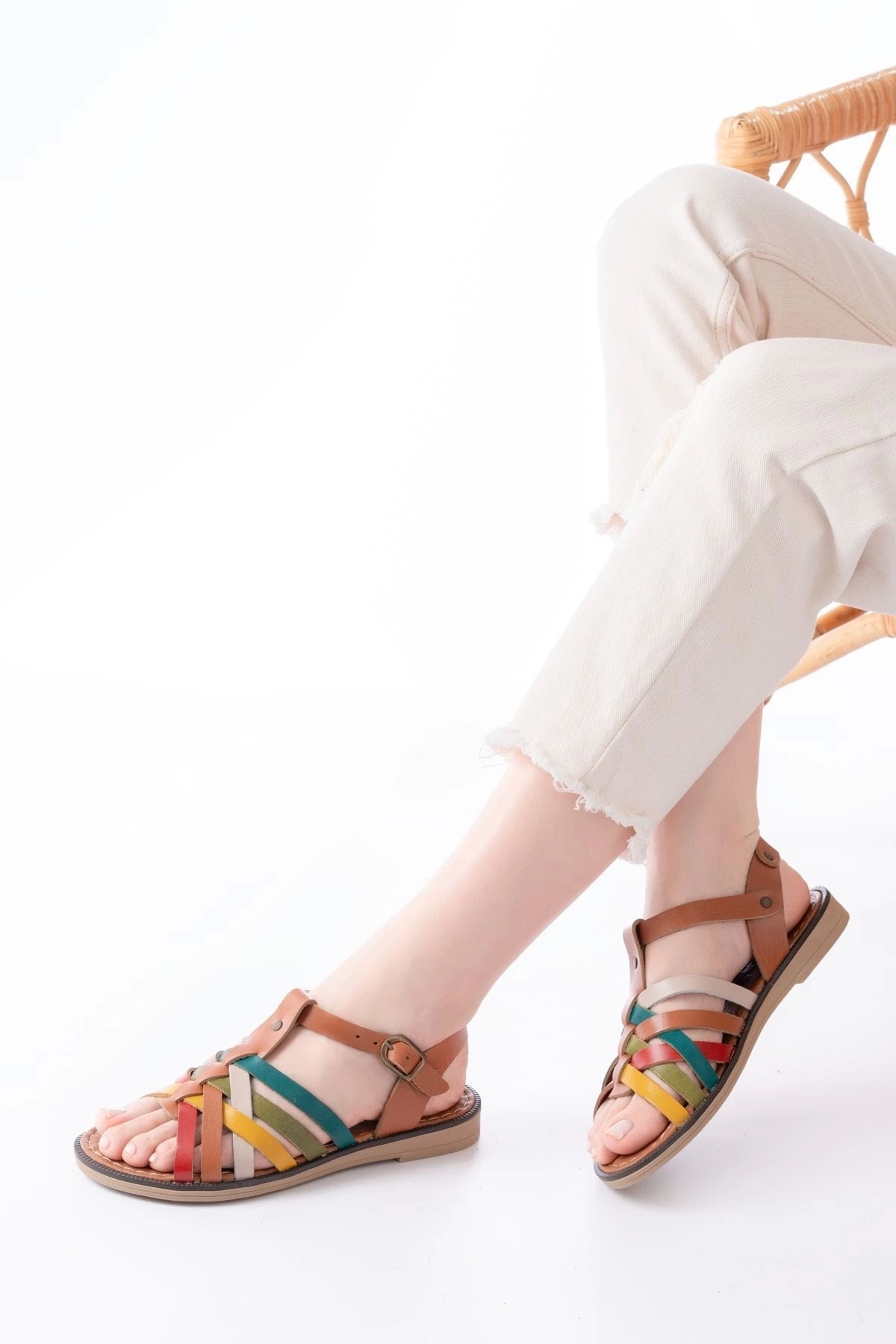 205-208 Multi Hakiki Deri Ortopedik Taban Kadın Sandalet