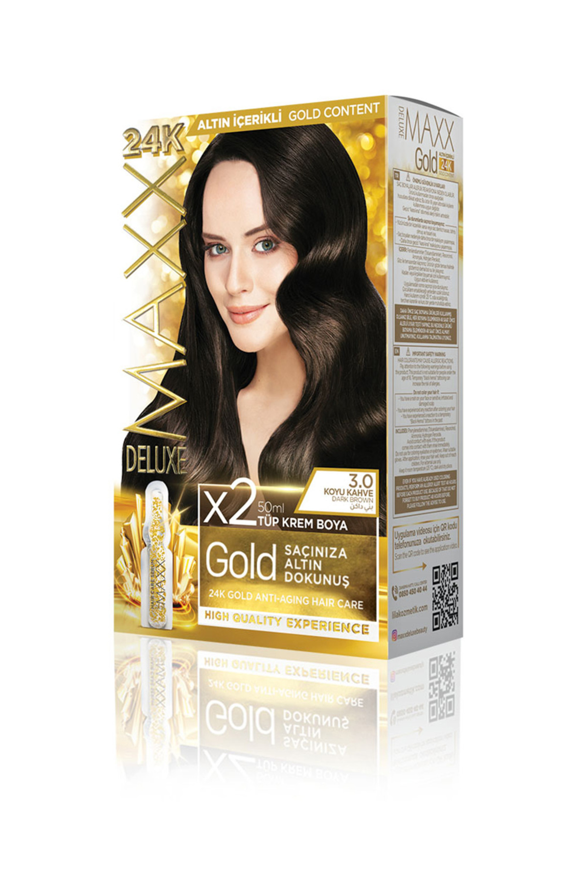 Maxx deluxe Golden Beauty saç boyası altın partikül içerikli maxx deluxe golden beauty krem saç boyaları, altının mucizevi etkisi ile saçlarınızı güçlendirir ve altın parlaklığı kazandırır.