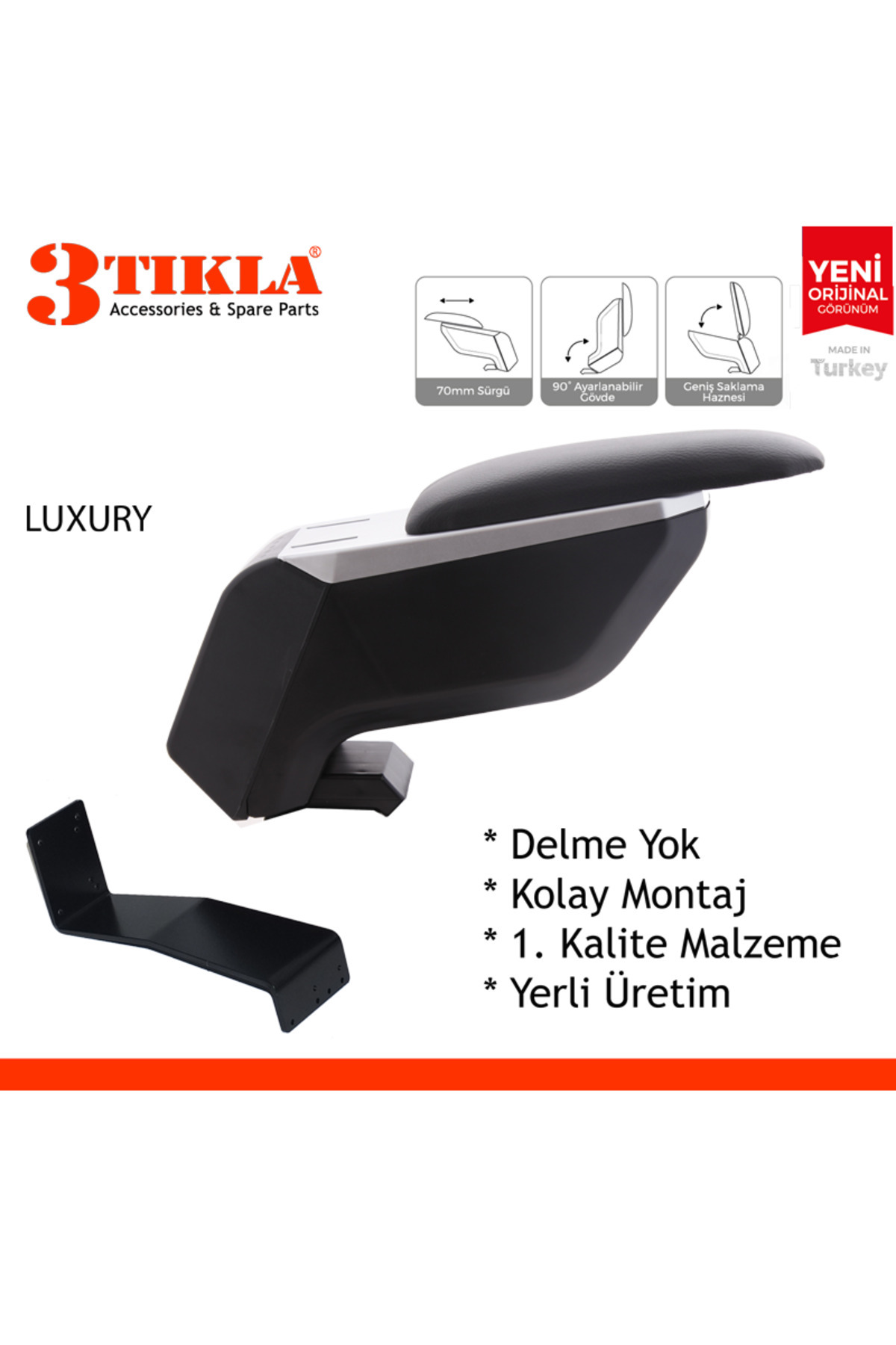 Lüks Set Hyundai i20 2021 Delmesiz Çelik Ayaklı Gri-Siyah Kolçak Kol Dayama, Direksiyon Kılıfı