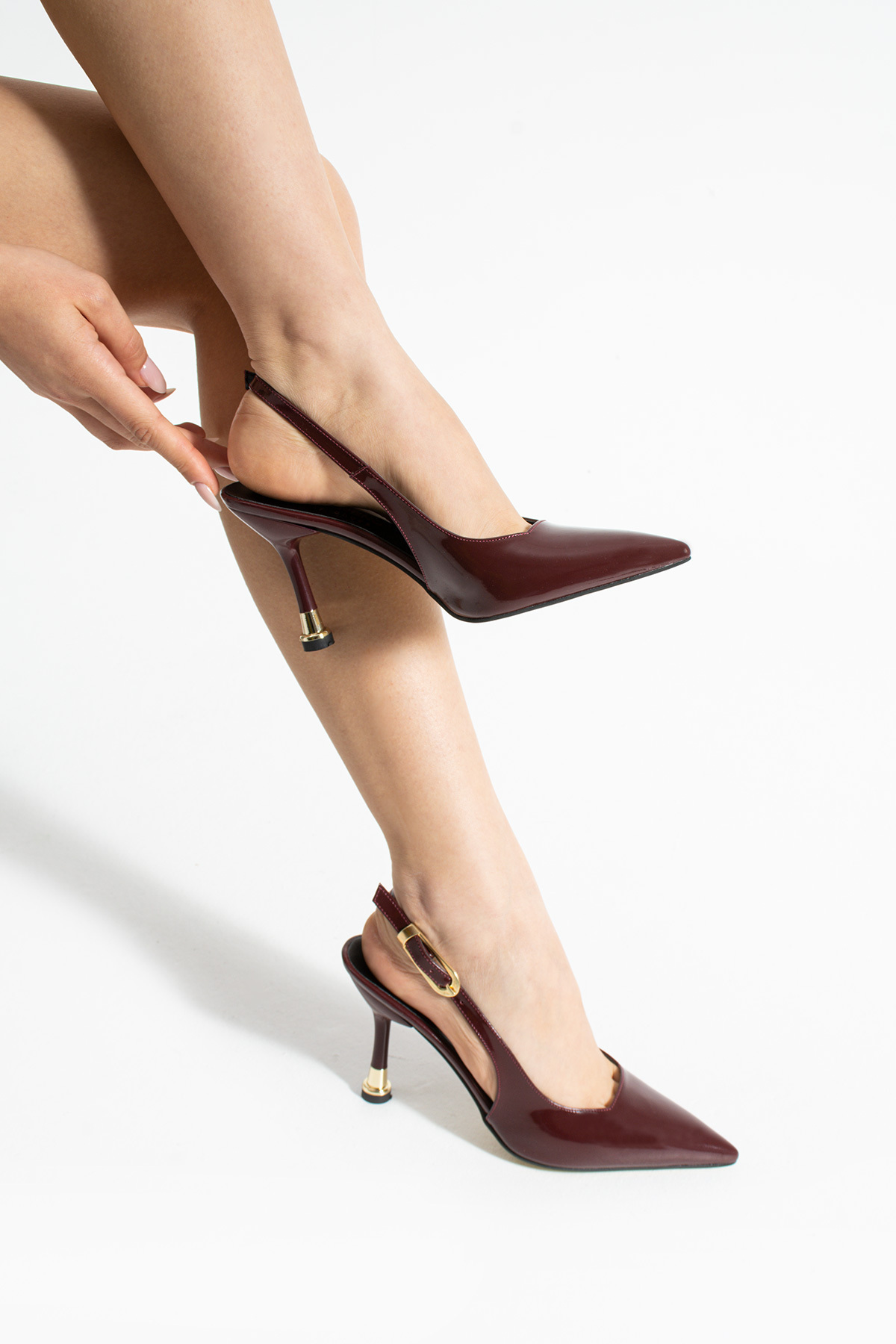 Bordo Rugan Kadın Topuklu Ayakkabı (8cm) Nişan, Söz, Düğün, Mezuniyet, İsteme Gece Sivri Abiye