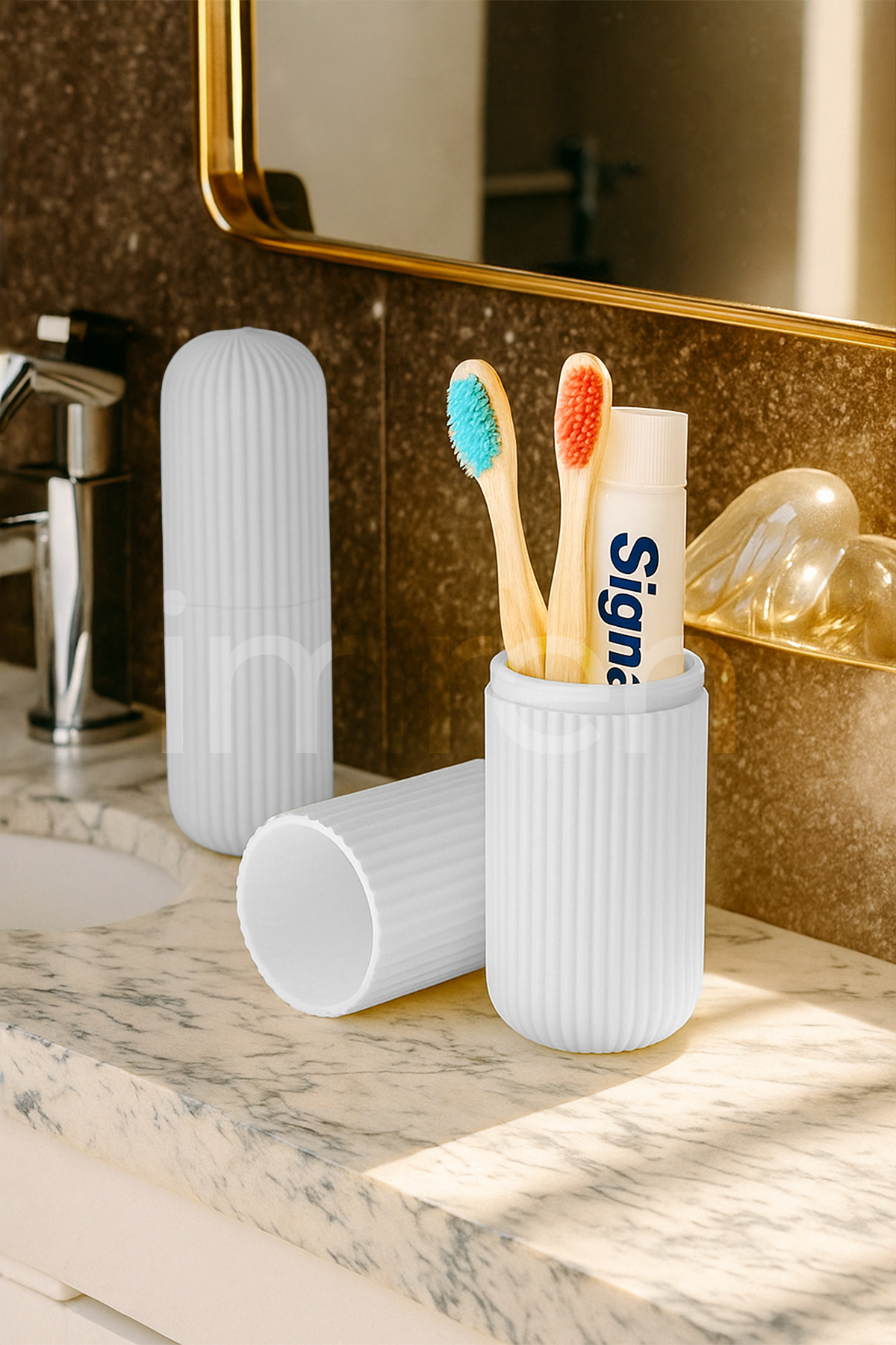 BEYAZ - Seyehat Tipi Aksesuar Taşıma Ve Saklama Kabı, Diş Fırçası Saklama Kutusu, Seyahat Kutusu