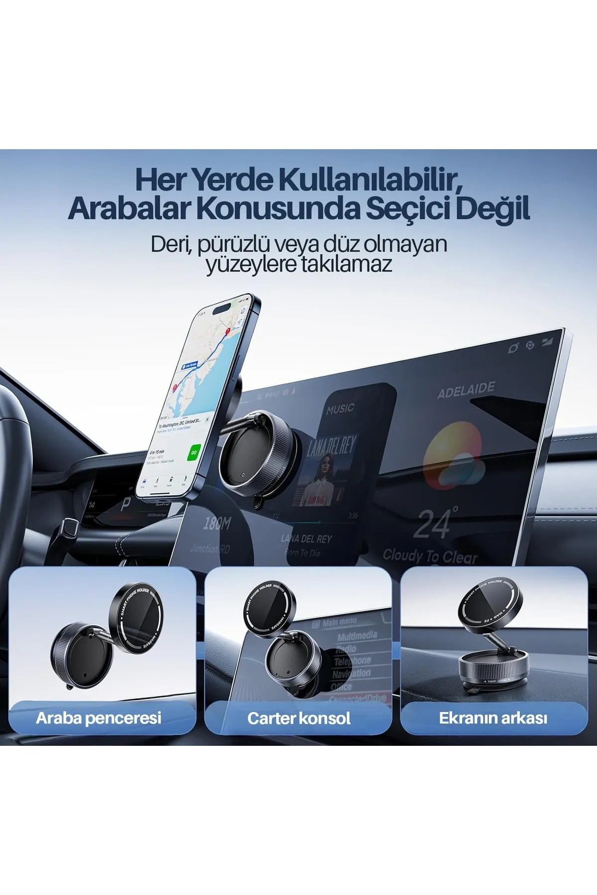 Tüm cihazlara Uyumlu Vakumlu Manyetik 360°Dönen Taşınabilir Çok Amaçlı Araç Telefon Tutucu
