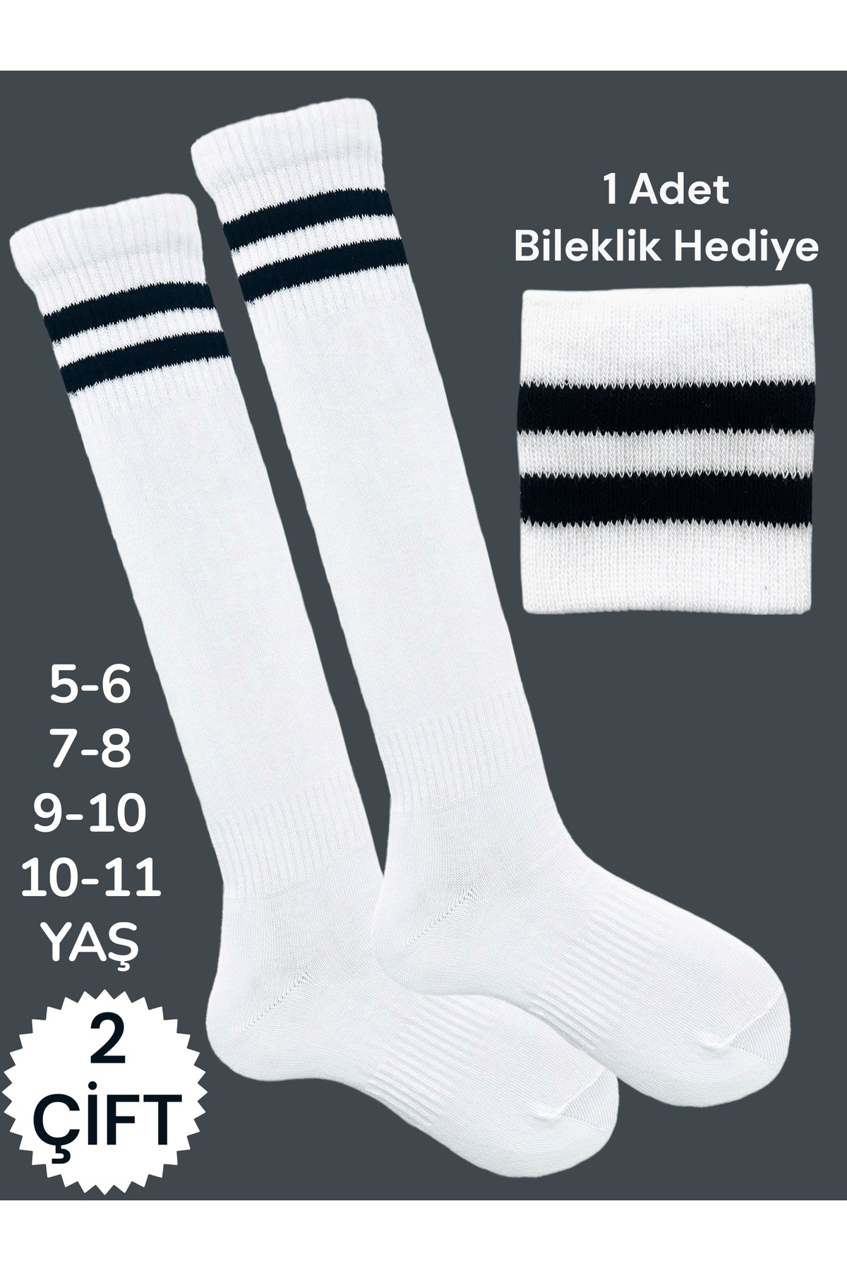 2 Çift Çok Renkli Çemberli Unisex Kız Erkek Çocuk Futbol Halı Saha Maç Çorabı Tozluk Spor Taraftar