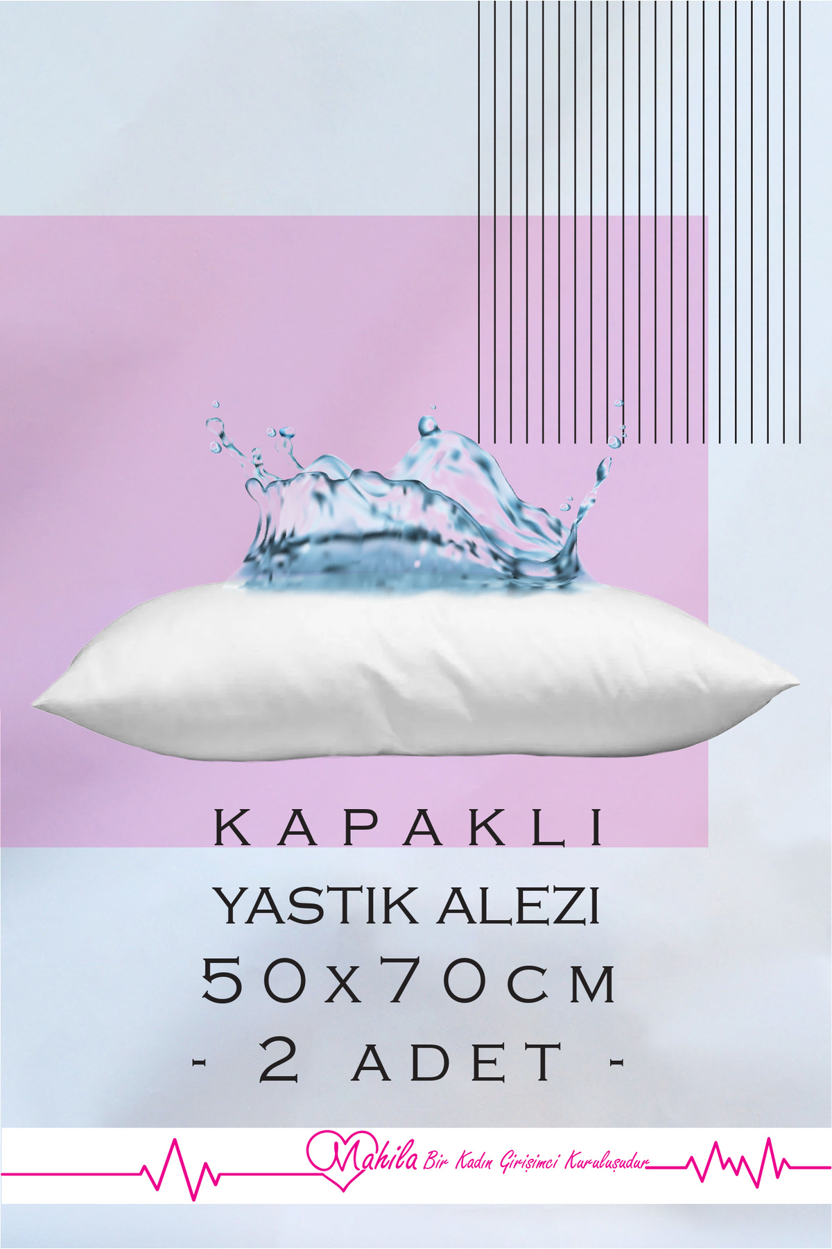 2 Adet 50x70 Yastık Alezi, Sıvı Geçirmez Yastık Alezi, Kapaklı Yastık Alezi, Yastık Koruyucu