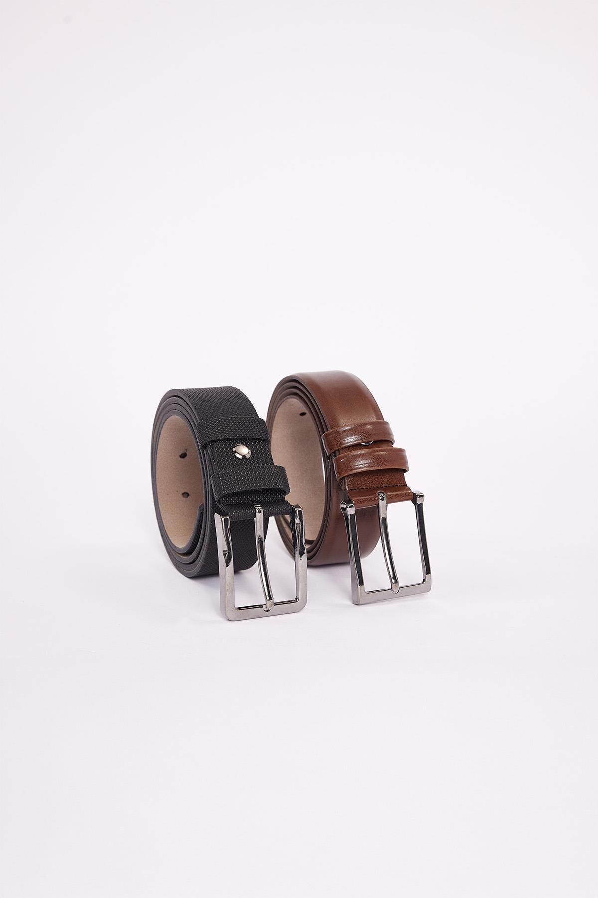Erkek 3'lü Set 3,5 Cm Klasik Siyah-Kahverengi-Lacivert Kemer