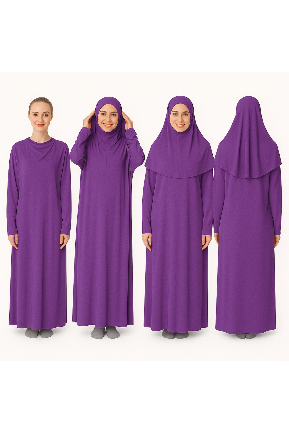 Pratik Namaz Elbisesi Kumaş: %100 örme Kumaş özelliği: Likralı, Dökümlü, parlak ve Kaliteli kumaş.