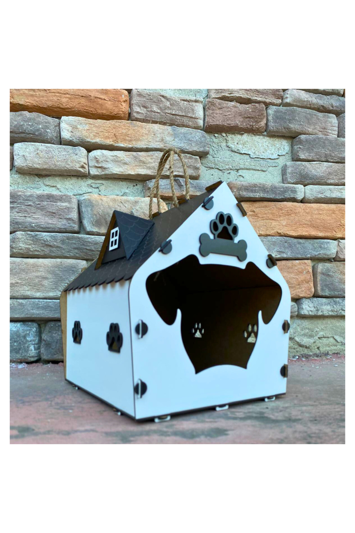 Ahşap Dekoratif Tek Katlı Beyaz Köpek Evi Yuvası Kulübesi