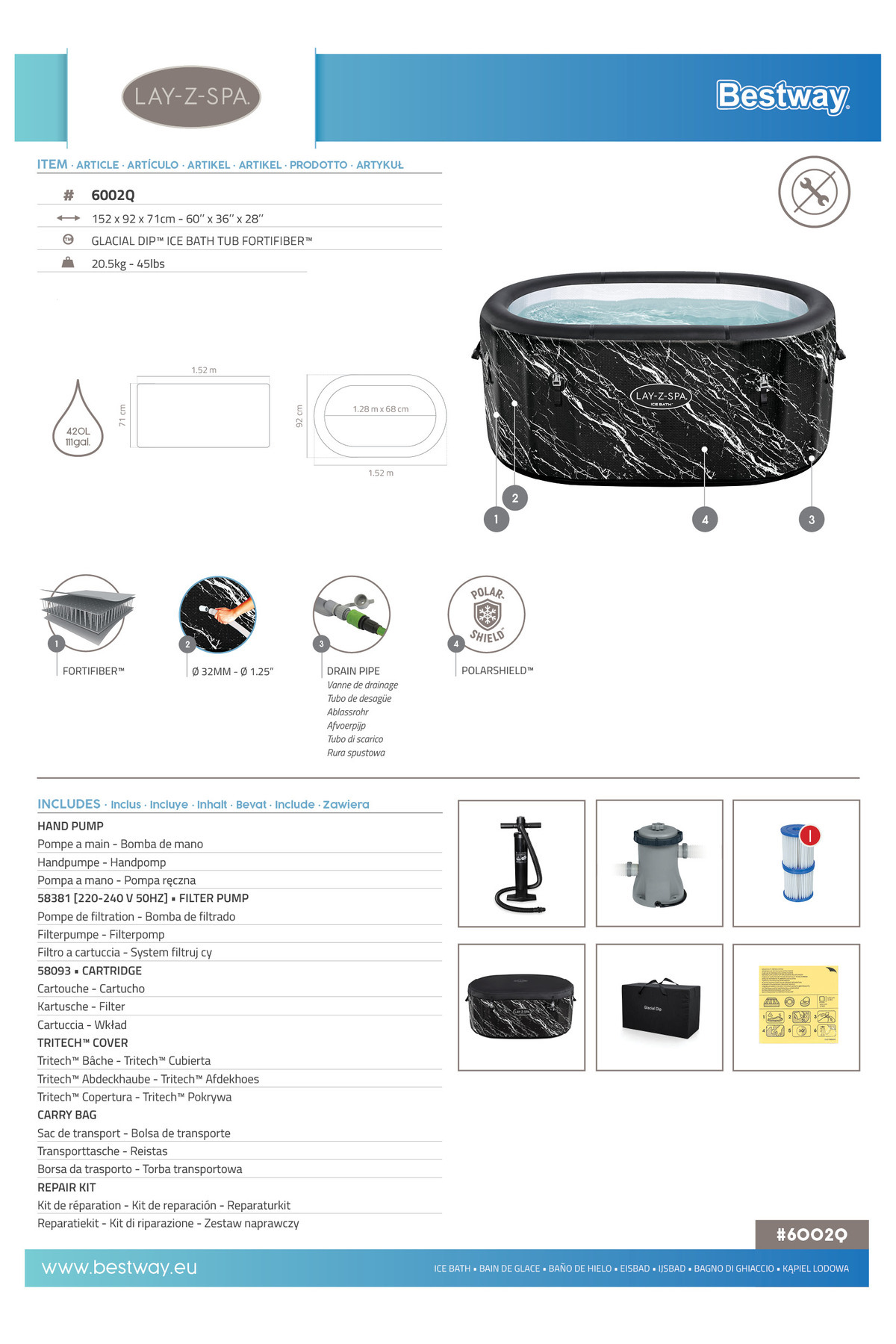 Lay-z-spa® Glacial Dip™ 6002q Soğuk Terapi Buz Banyosu Küveti, 2 Kişilik