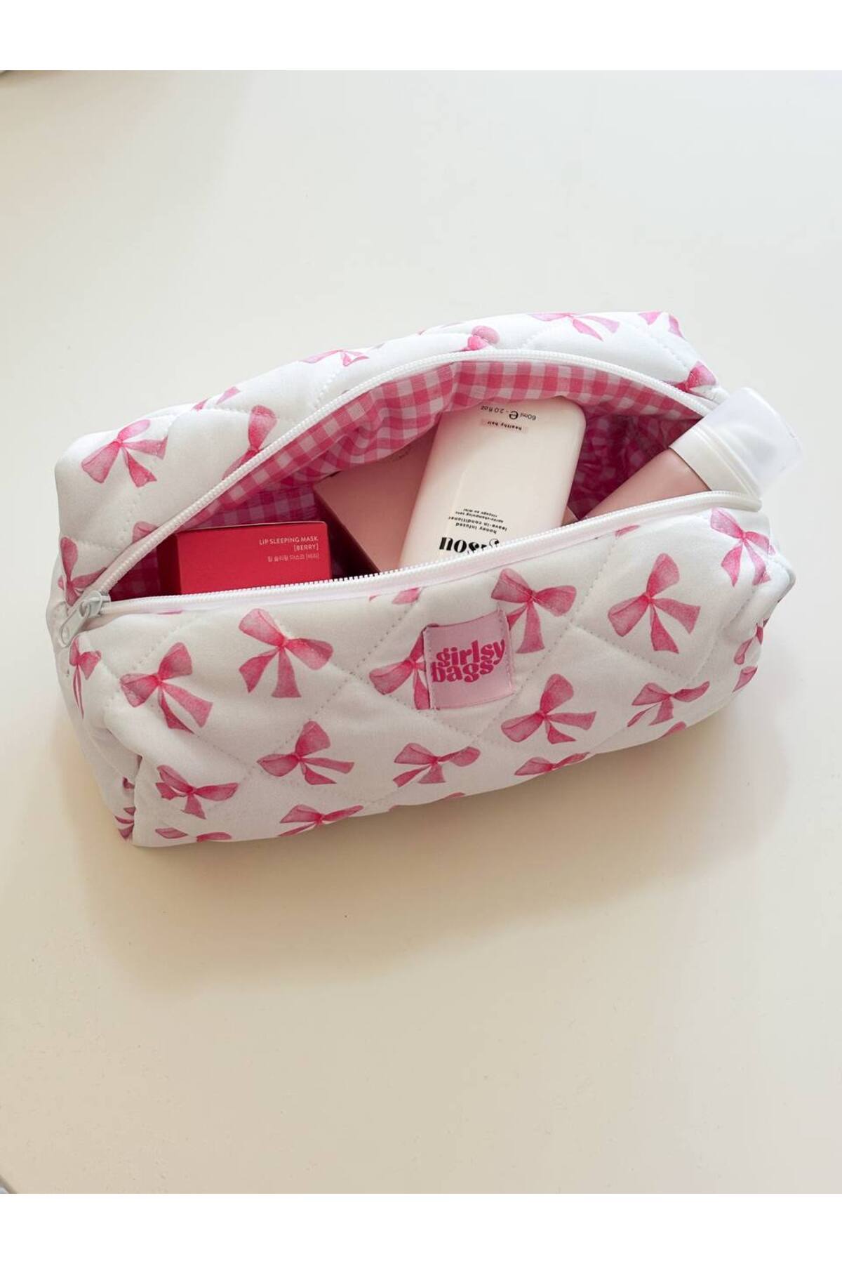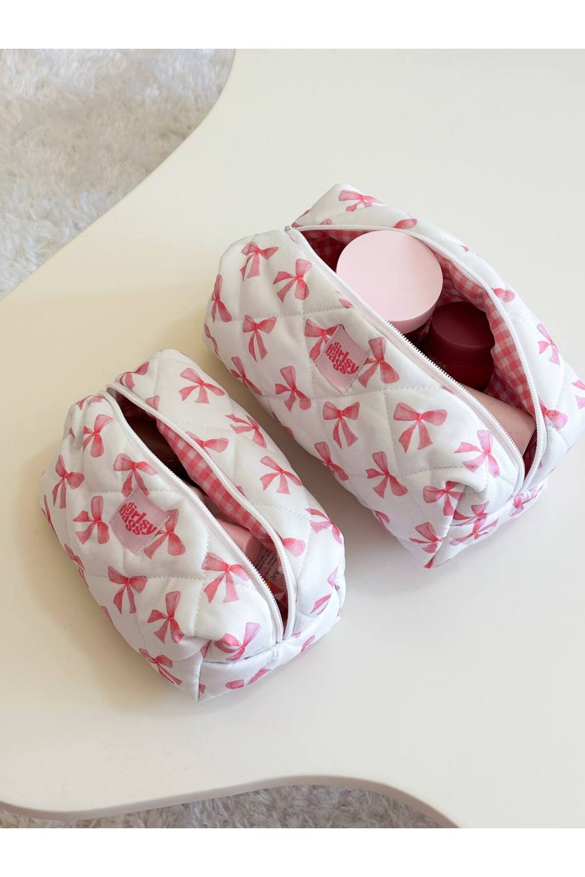 Pembe Kurdeleli Makyaj Çantası Büyük Boy Fermuarlı Portföy Çanta