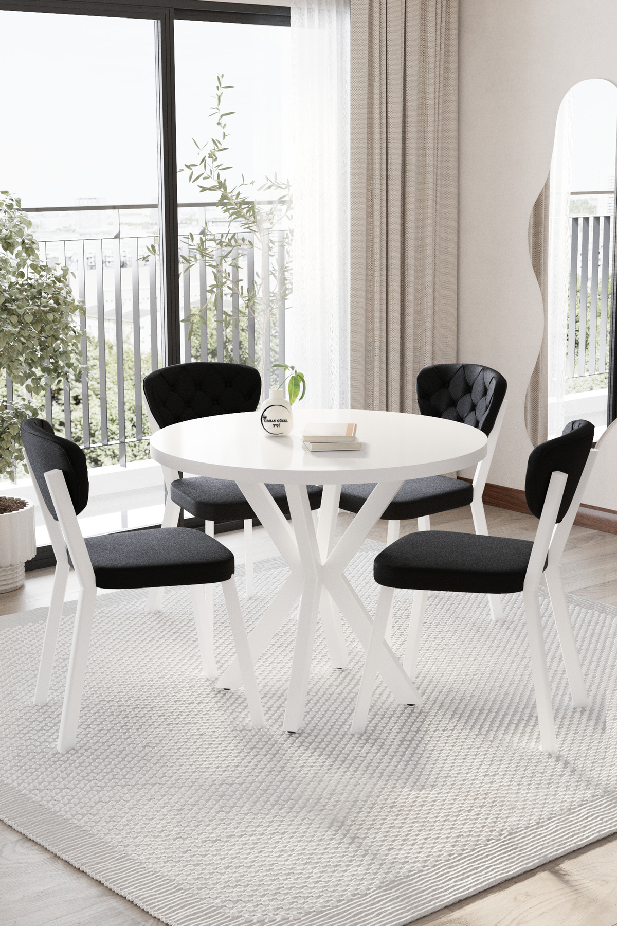 - Yuvarlak tasarımı ile modern mutfaklara şıklık katan Elma AVANGARDE Mutfak Masası Takımı, 4 kişilik yemek deneyimi sunar.