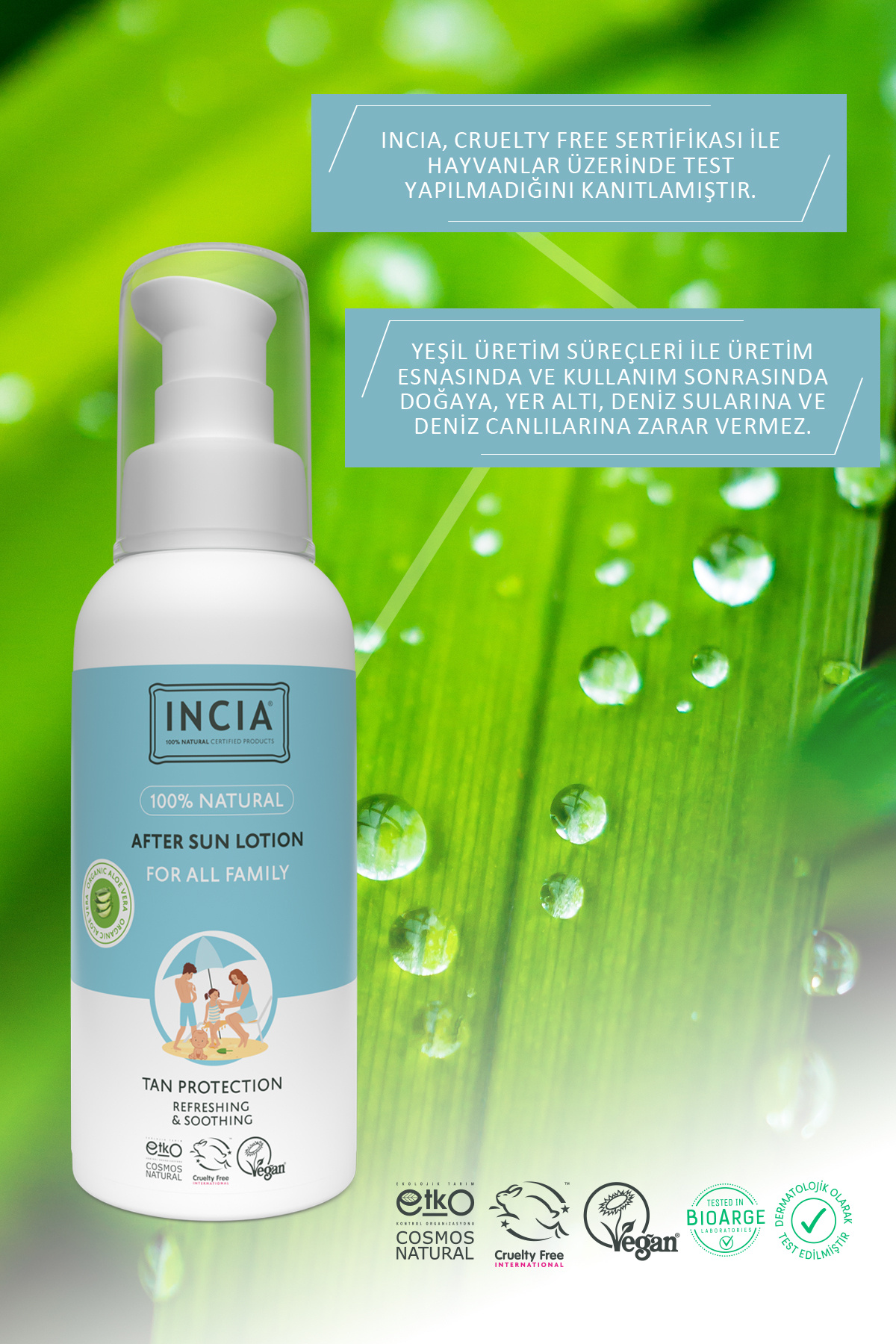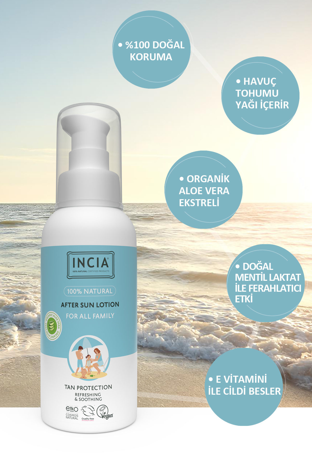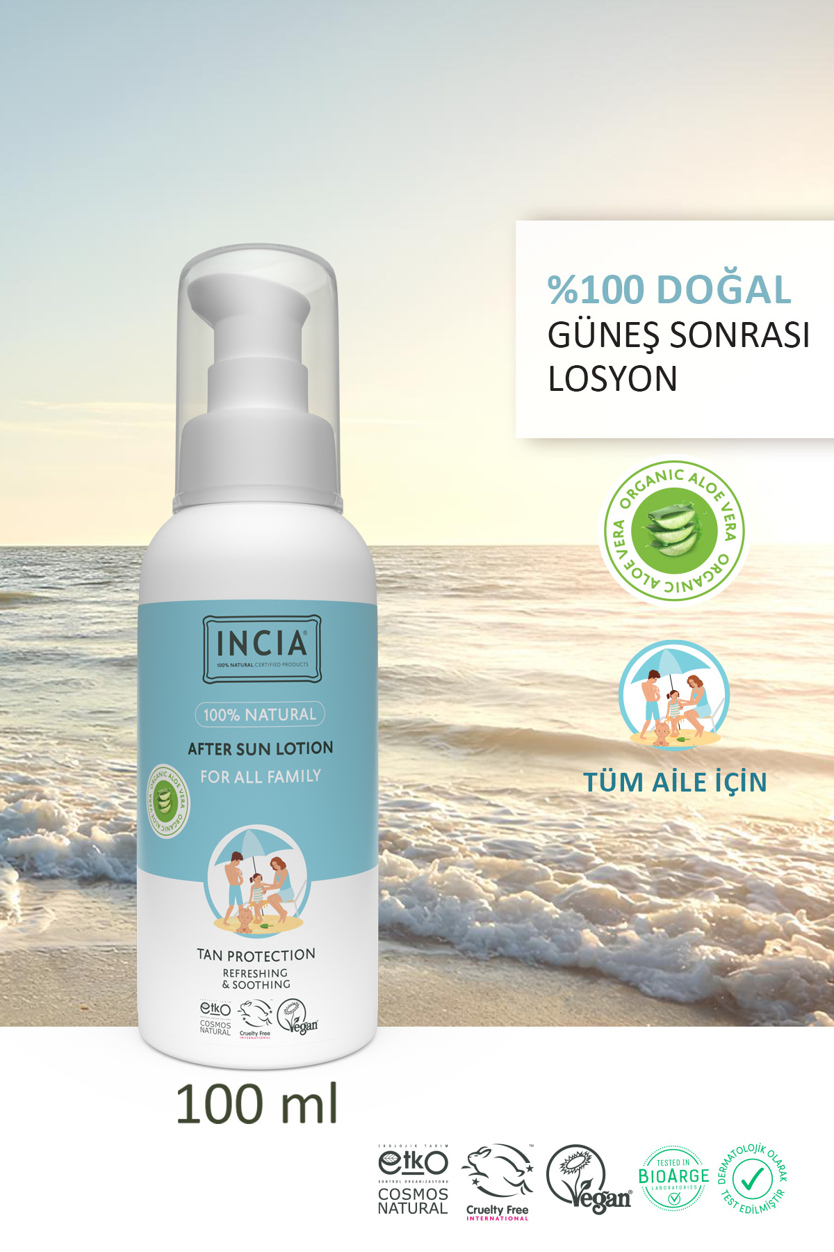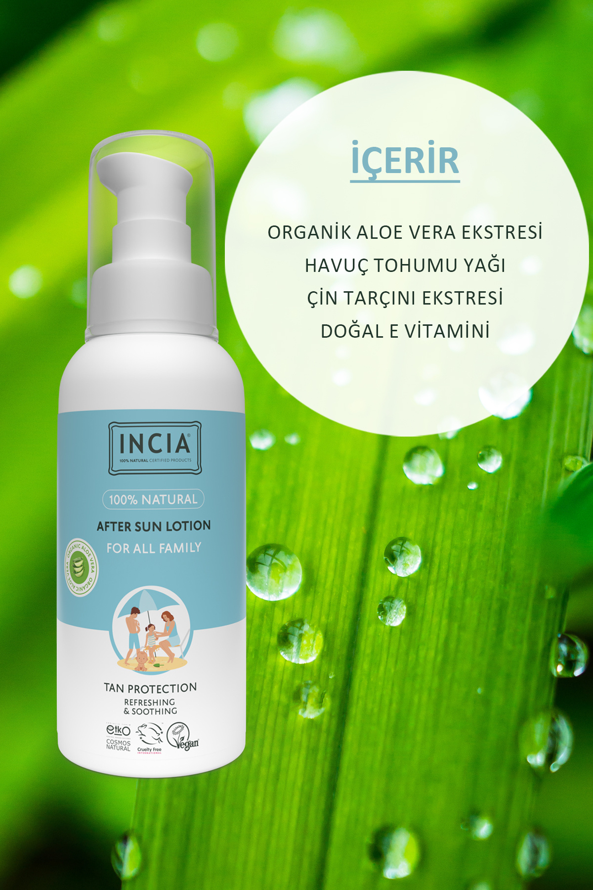 INCIA 100% Natural After Sun Losyon Güneş Sonrası Organik Aloe Vera Nemlendirici Rahatlatıcı 100 ml