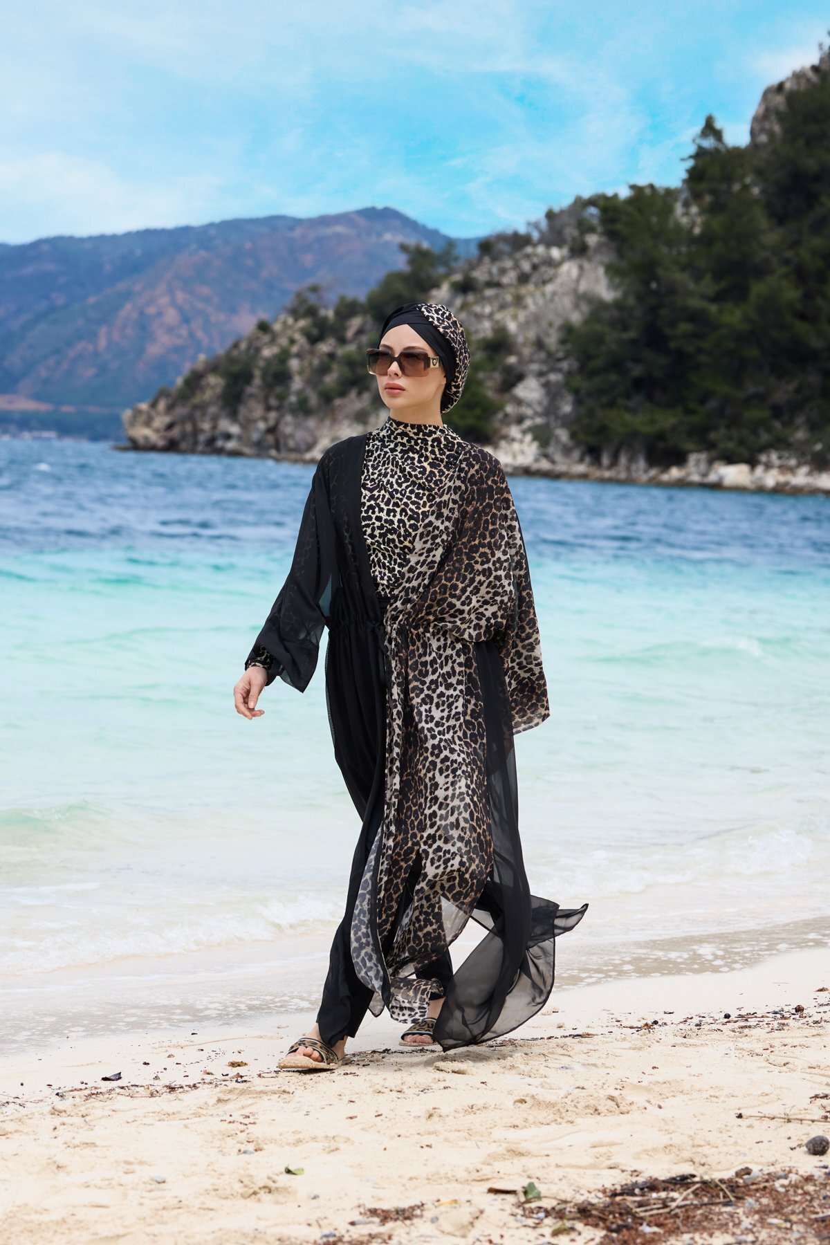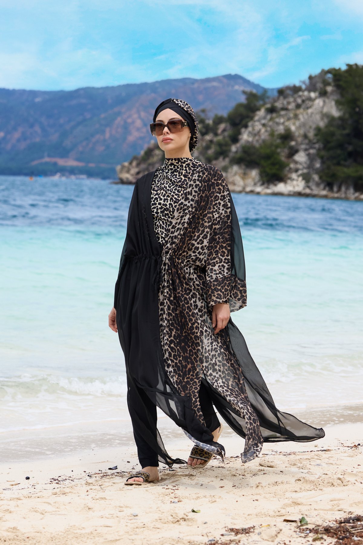 Serengeti Leopar Model Beli Bağcıklı Tasarım Tesettür Pareo