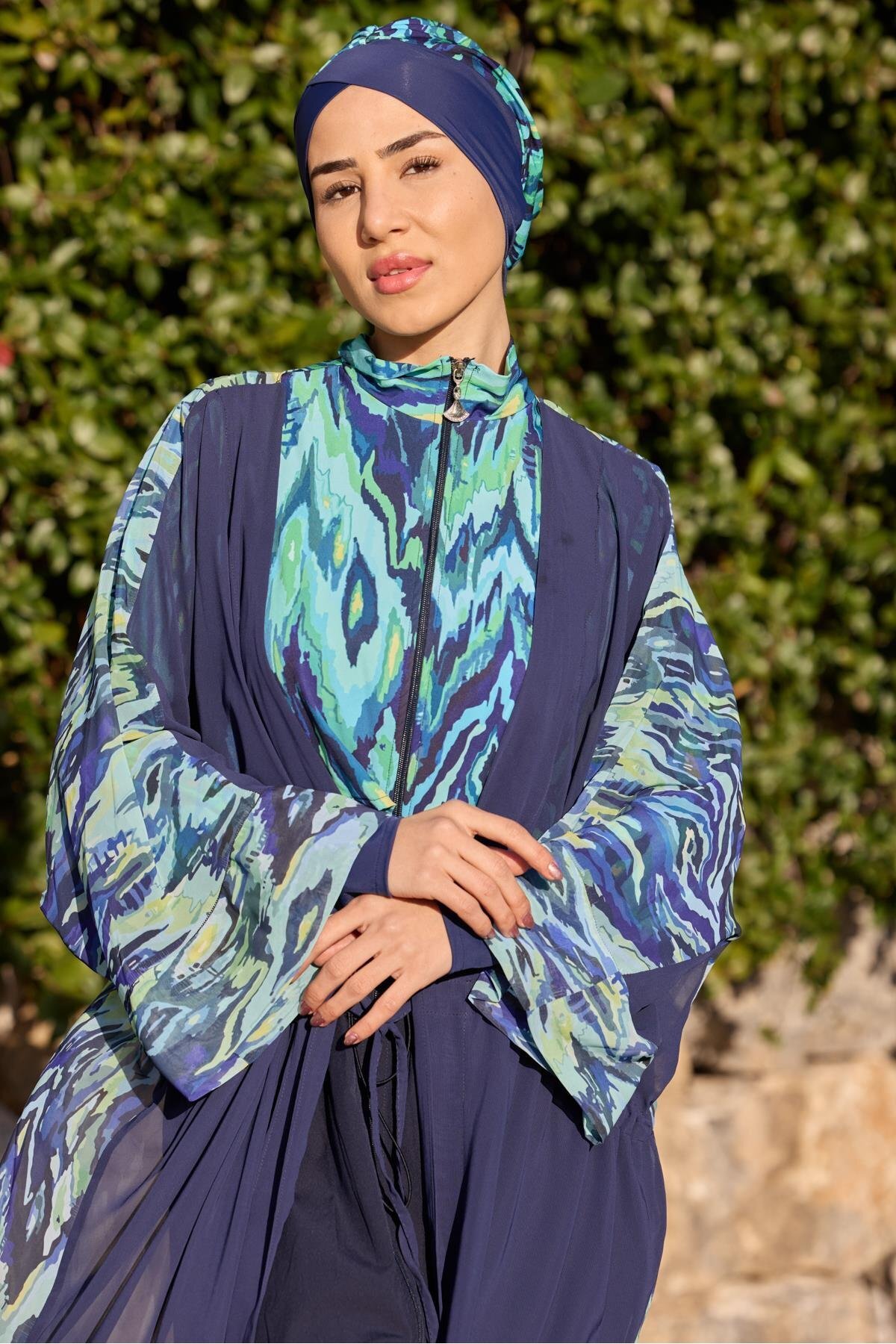 Viona Model Mavi Beli Bağcıklı Tasarım Tesettür Pareo