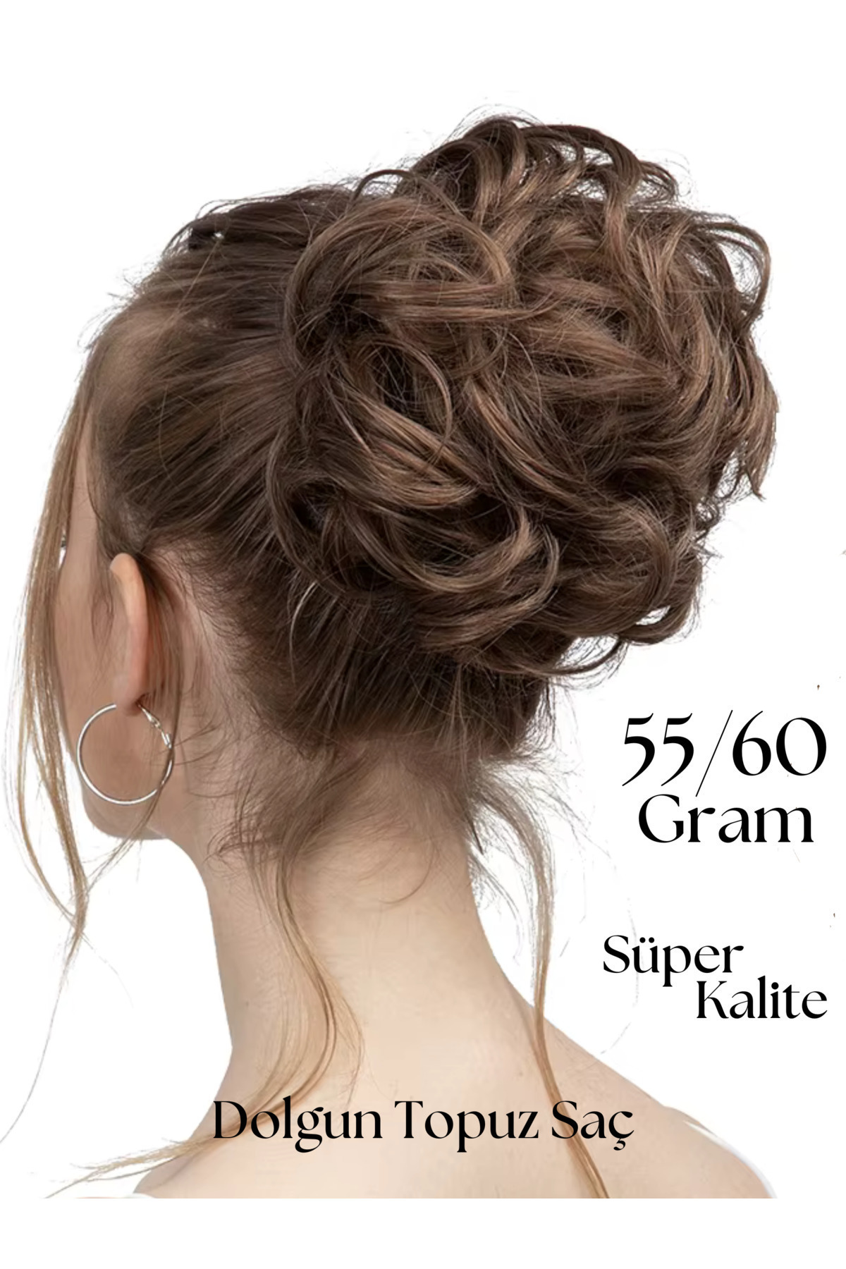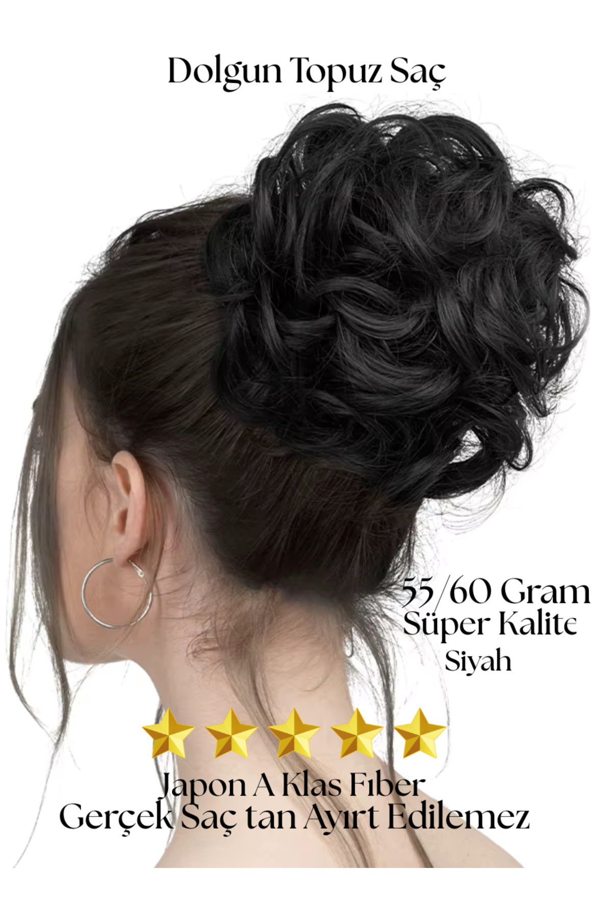 Toka Lastikli Siyah Saçlı Süper Kalite Dolgun Topuz Peruk Postiş At Kuyruğu