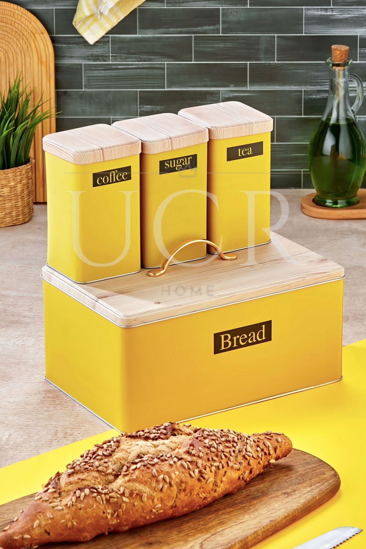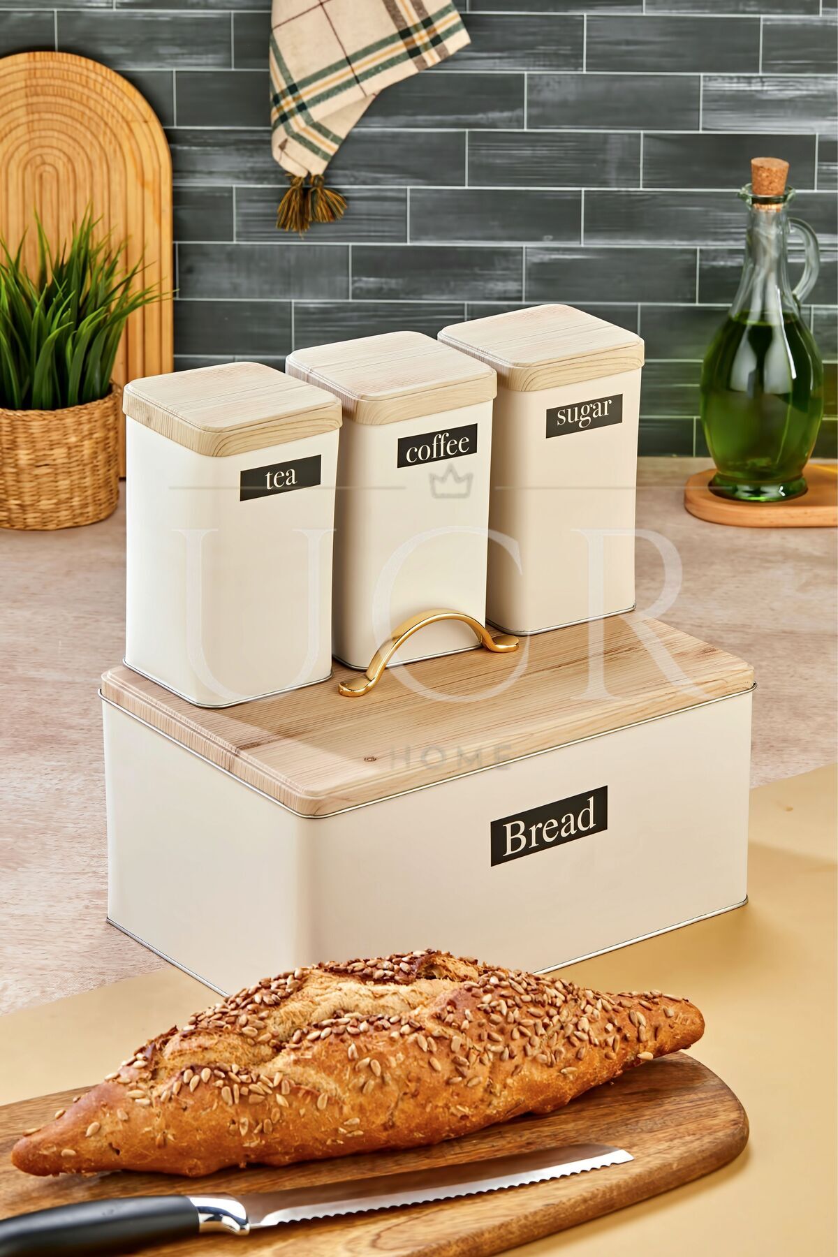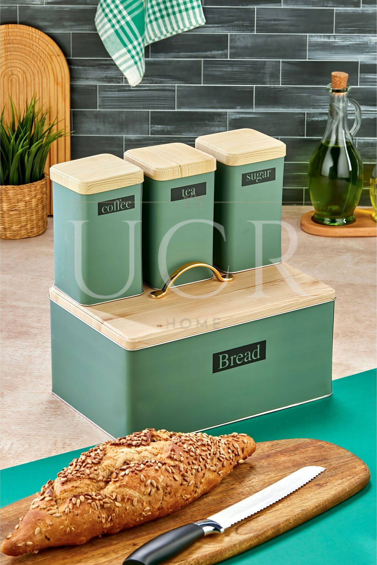 - Retro tarzıyla dikkat çeken metal ekmeklik ve kavanoz seti, mutfak dekorasyonunuza nostaljik bir dokunuş katıyor.
