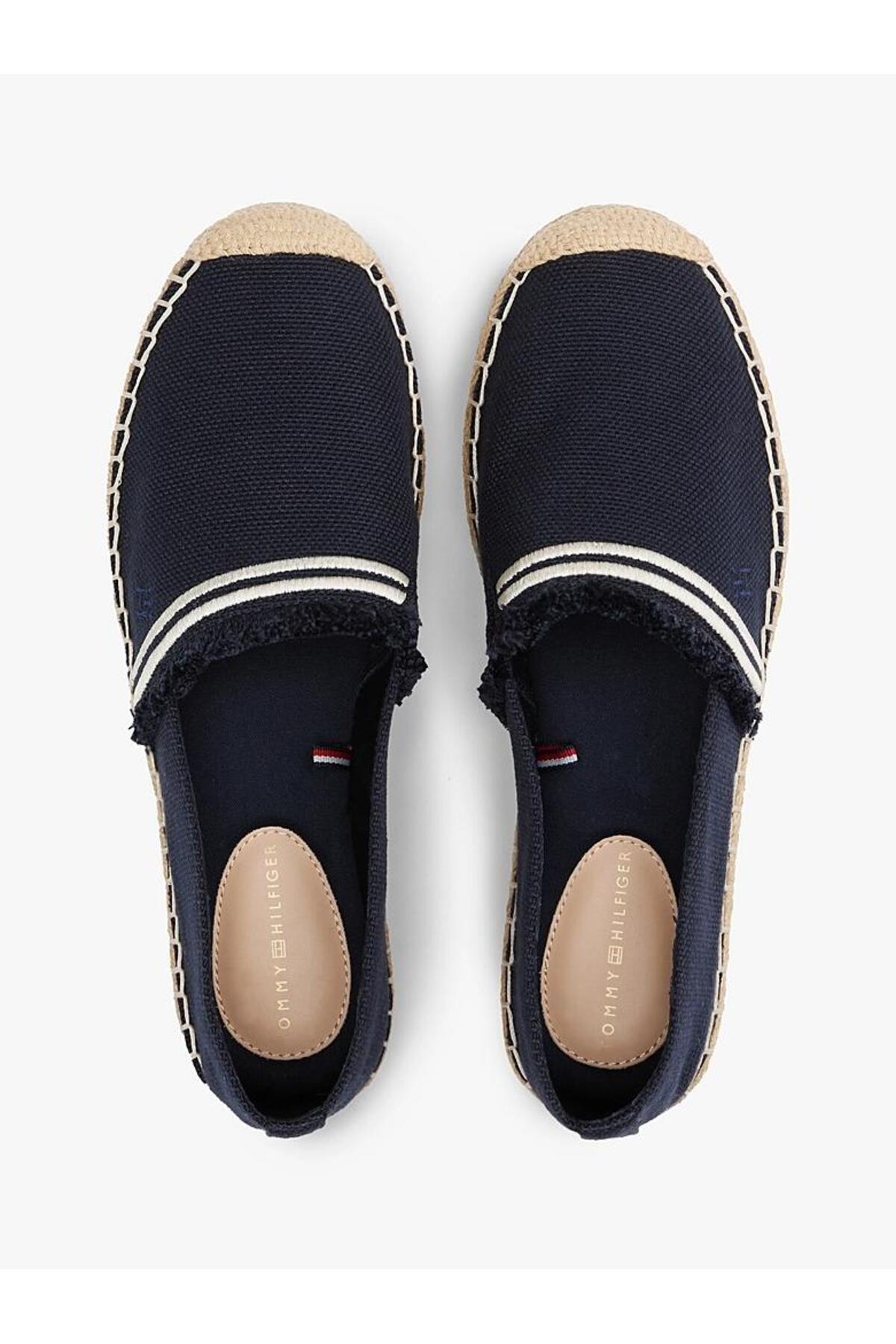 • Kanvas üst kısım • Pamuklu astar • Termoplastik kauçuk dış taban • Orta taban ve burun kısmında ip detayı • Üst kısımda püskül detayı • Ön kısımda tonlu TH monogram işlemesi • Tommy Hilfiger markası Şekil ve uyum • Giymesi kolay • Yuvarlak burun • Taban yüksekliği 1,5 cm Kompozisyon ve bakım • %100 polyester FW0FW08881DW6