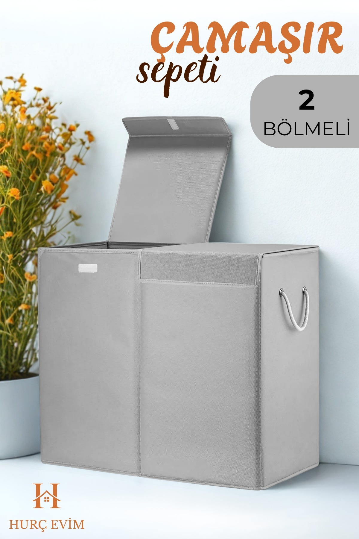 Çift Bölmeli Kapaklı Siyah Çamaşır Sepeti – 100 Lt, Su Geçirmez, Katlanabilir, Silinebilir Kumaş