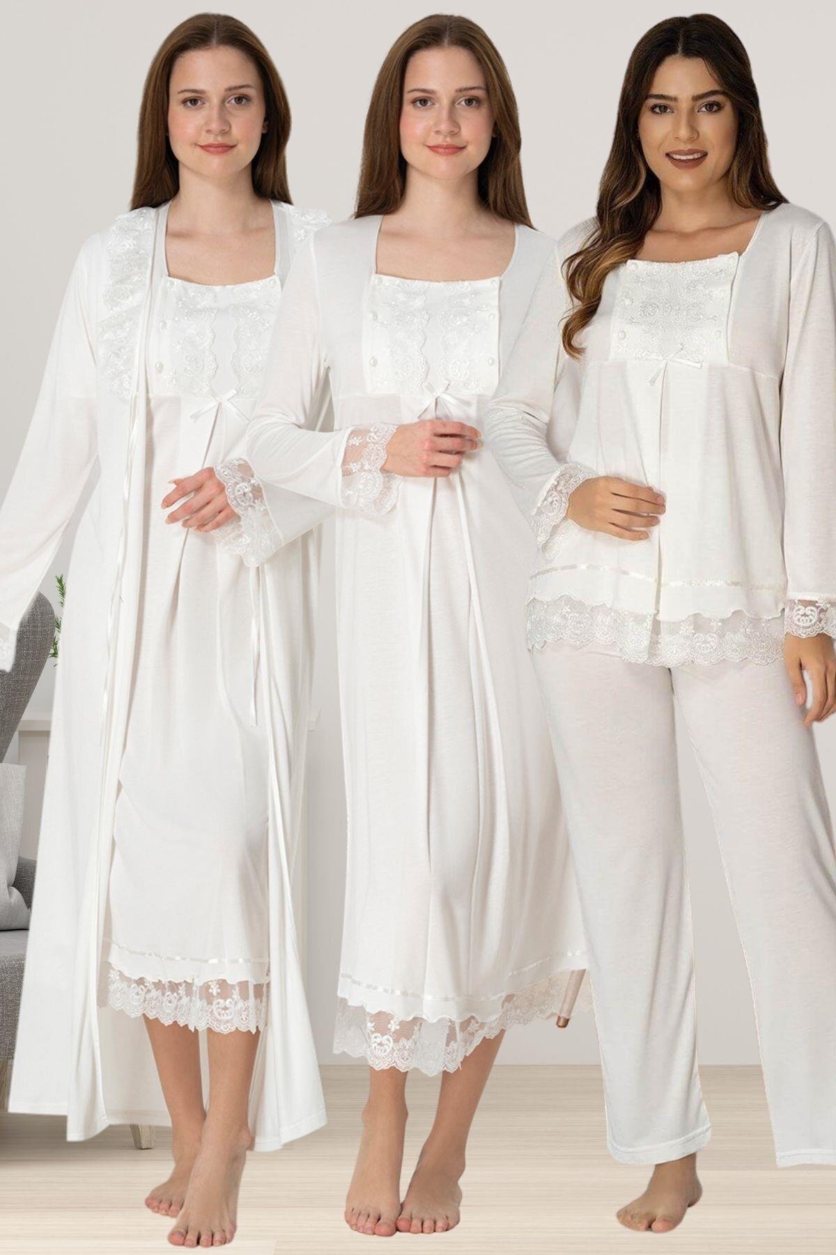 - Ekru rengiyle zarif ve şık bir görünüm sunan bu hamile pijama takımı, lohusa döneminizde konforunuzdan ödün vermez.