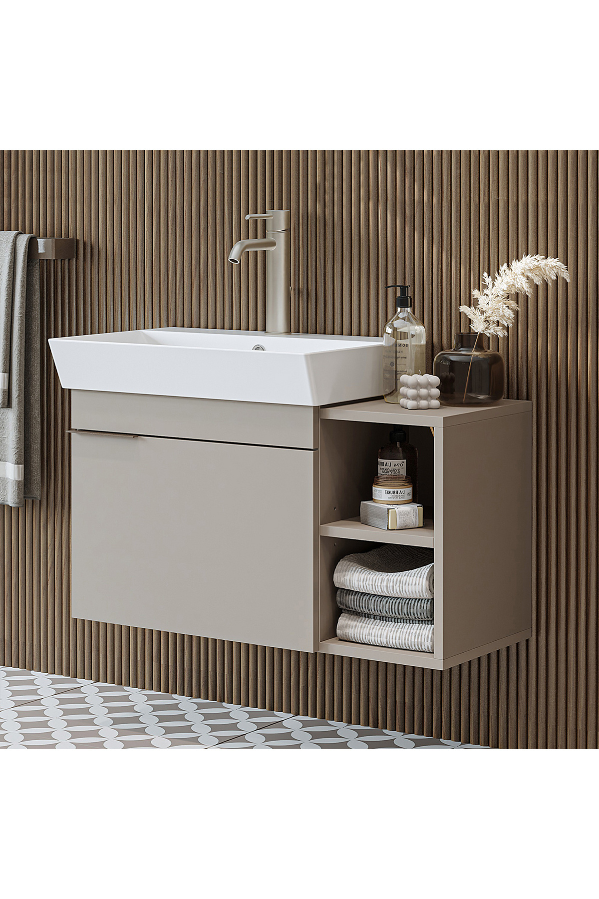 Likya Tek Kapaklı Açık Raflı Lavabolu 82 Cm Banyo Dolabı Alt, Lavabolu Alt Banyo Dolabı