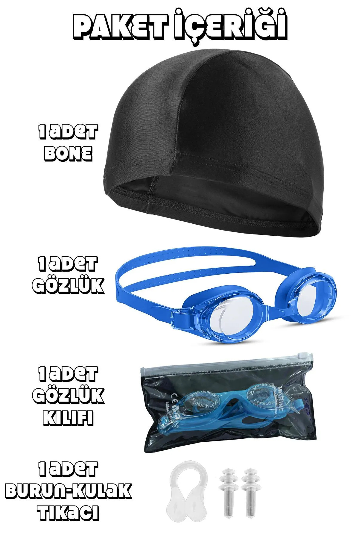Yüzücü Gözlüğü 4LÜ SET Boneli Kulak & Burun Tıkaçlı Ayarlanabilir Deniz Havuz Yüzme Gözlüğü