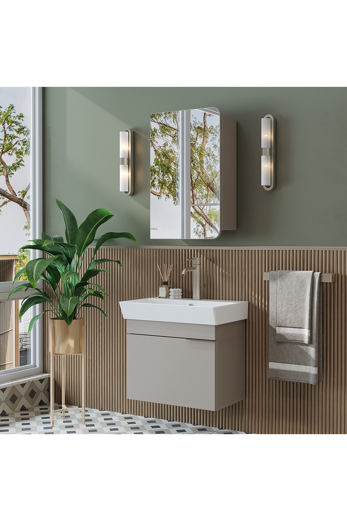 Likya Lavabolu Banyo Dolabı Takımı, Mdflam Tek Kapaklı Lavabolu 59 Cm Banyo Alt Dolabı + Üst Dolabı