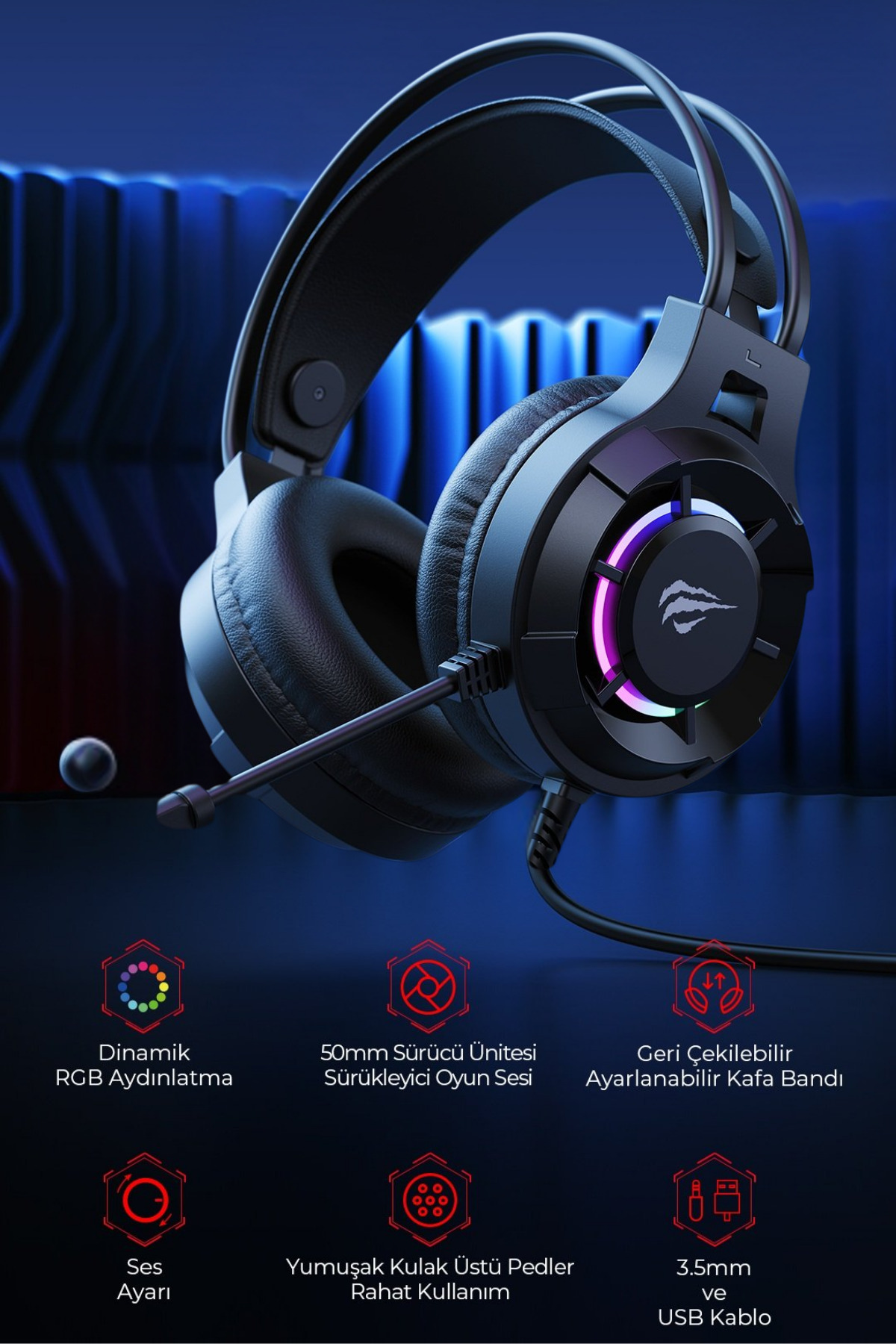 Gamenote H2049D RGB Işıklı 3.5mm Gaming Kablolu Oyuncu Kulaklığı - Mikrofonlu, 50mm Sürücü