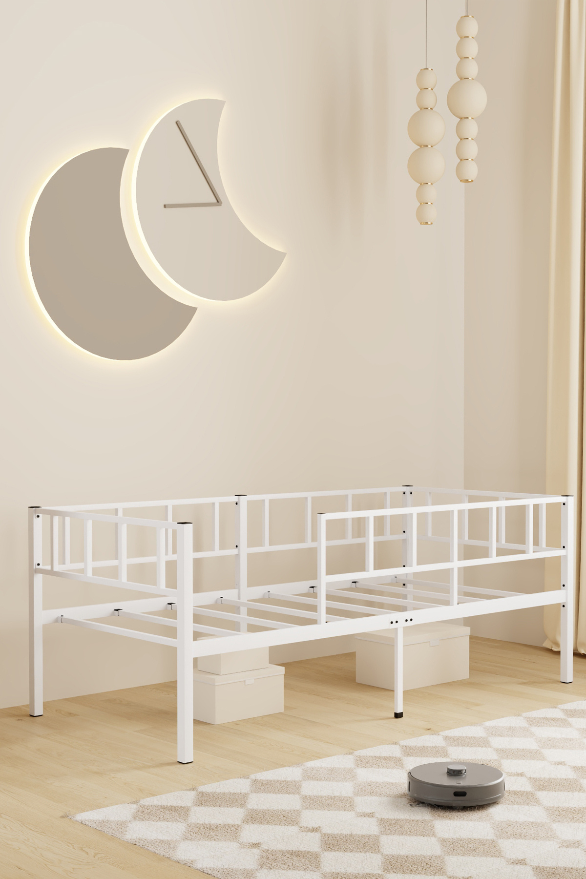 Daybed Zenit Metal Karyola Beyaz, Korkuluklu Karyola, Ölçü Seçenekli