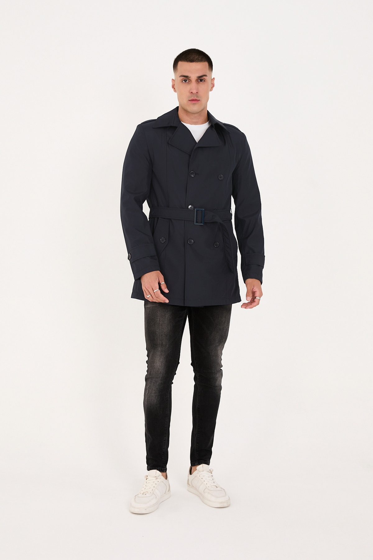 - Lacivert rengiyle zamansız bir tarza sahip olan bu trençkot, günlük kullanımda kolayca kombinlenebilir.