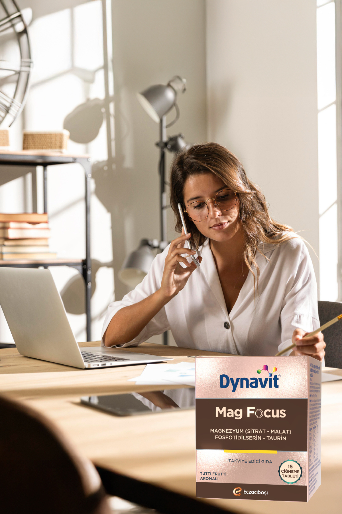 Dynavit Mag Focus: Magnezyum Malat, Magnezyum Sitrat, Fosfotidilserin ve Taurin içeren çiğneme tableti takviye edici gıdadır.