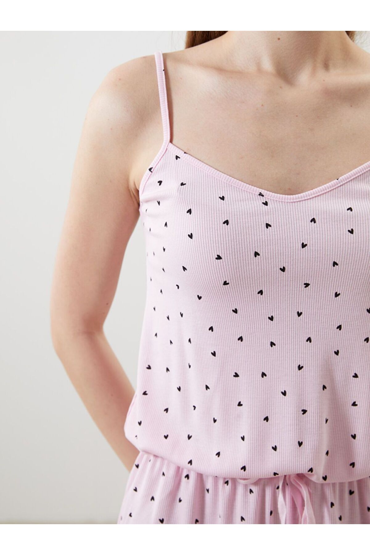 LCW DREAM V Yaka Desenli Askılı Kadın Şortlu Tulum Pijama