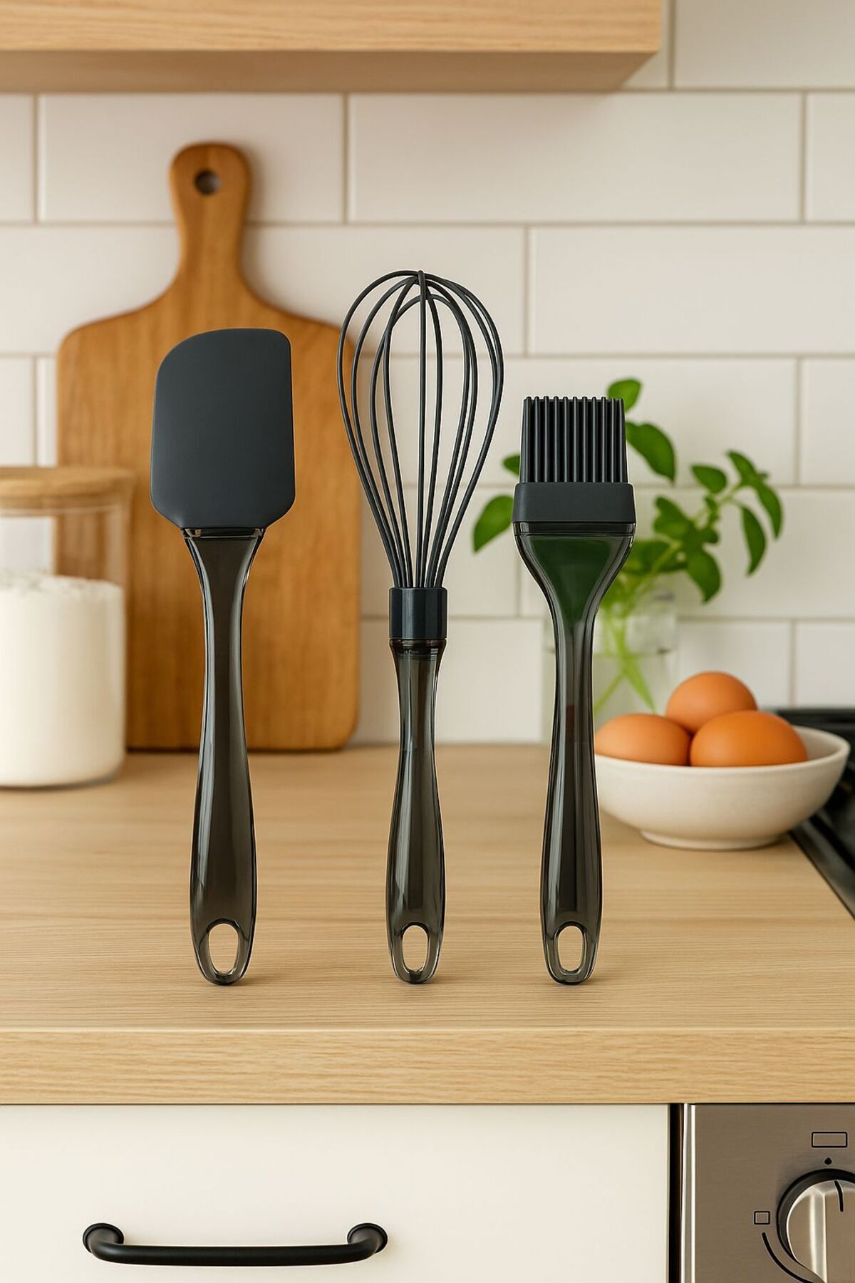 3 Parça Silikon Yemek Pişirme Mutfak Seti Çırpıcı Yumurta Fırçası Spatula
