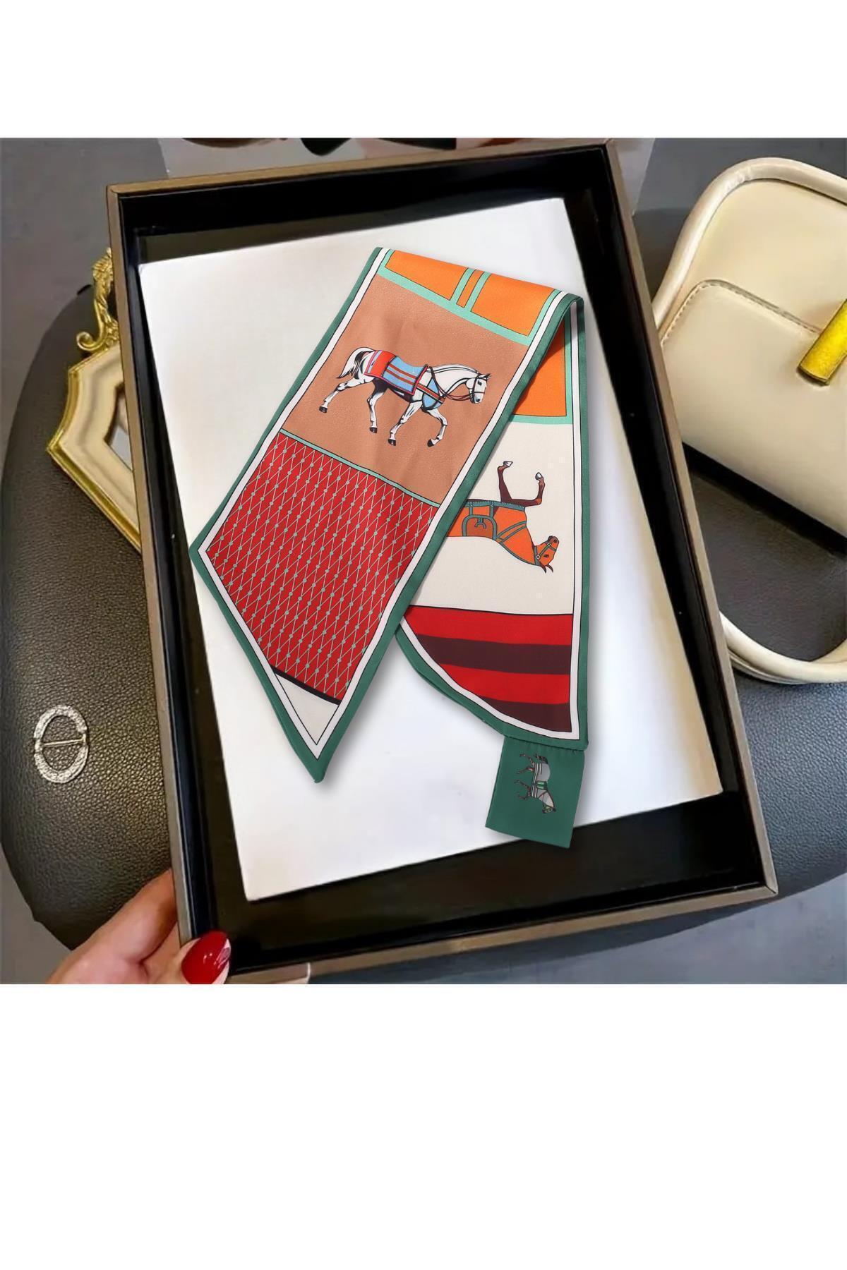 Nurfemina At Figürlü Zarif Tasarım Şık Kadın Kravat Fular Ürün Özellikleri: Malzeme: Yüksek kaliteli saten ipek kumaş Tasarım: At figürlü özel desen, kırmızı-yeşil tonları Boyut: 72x14 cm Kullanım Alanı: Boyun fuları Cinsiyet: Kadın Günlük kombinlerinizi tamamlamak, stilinize şık bir dokunuş katmak için ideal bir aksesuardır.
