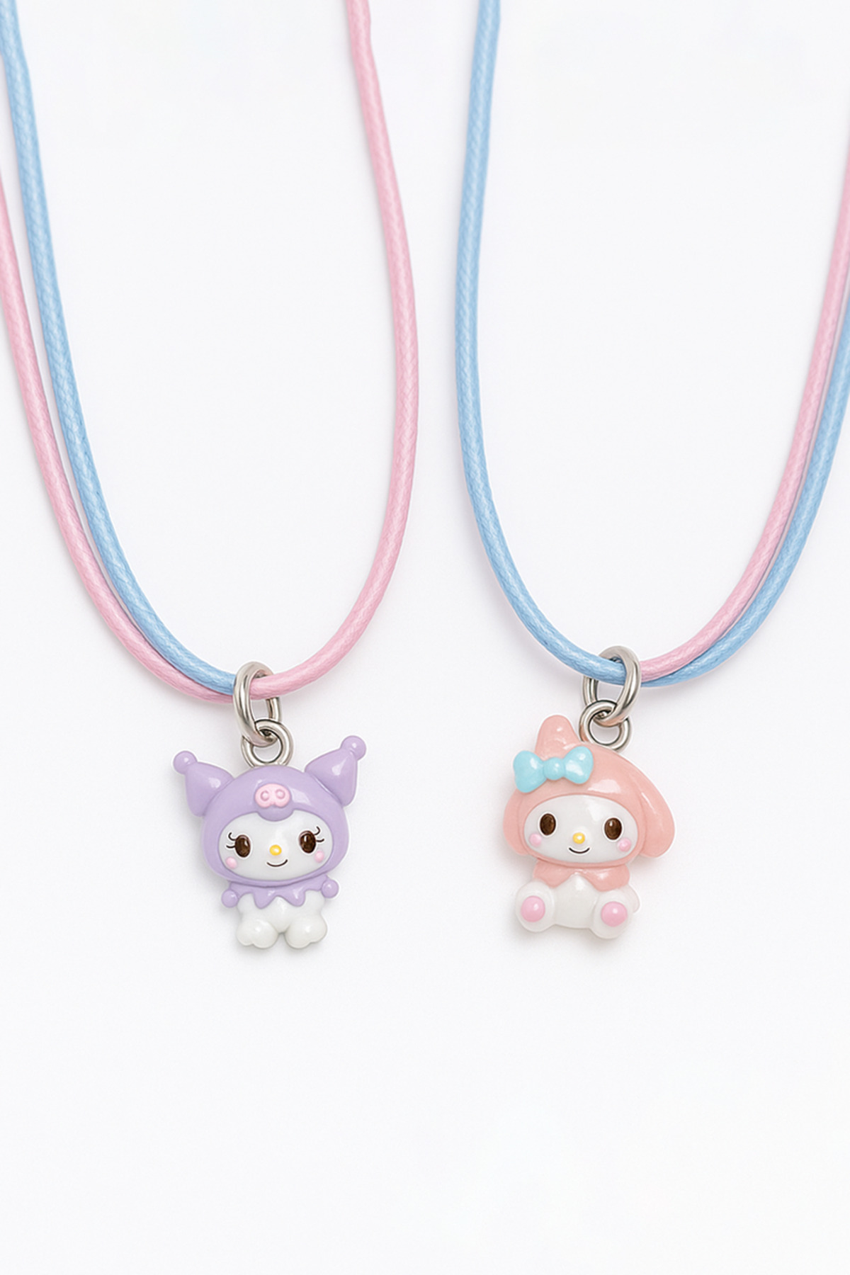 2li Kuromi Hello Kity My Melody Tasatımlı Pembe Mavi İpli Çocuk Kolyesi