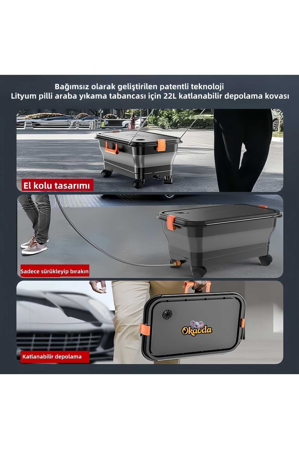Lityum pil araba yıkama tabancası özel katlanabilir depolama çıkarılabilir kova *Hatırlatma: Ürün şunları içerir (kova, kova kılıfı, üniversal tekerlek, kova aksesuarları)
