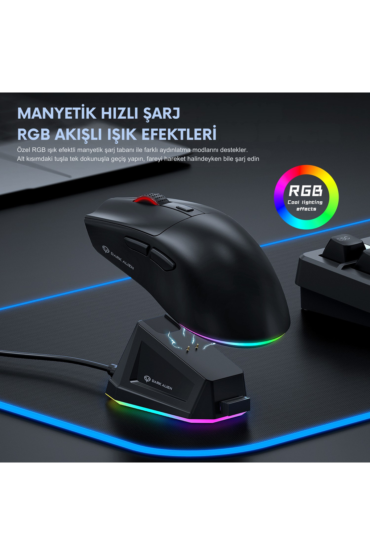 - Siyah renk seçeneğiyle şık ve modern bir tasarıma sahip olan Dark Alien X1 Kablosuz Oyuncu Mouse, her türlü oyun ortamına kolayca uyum sağlar.