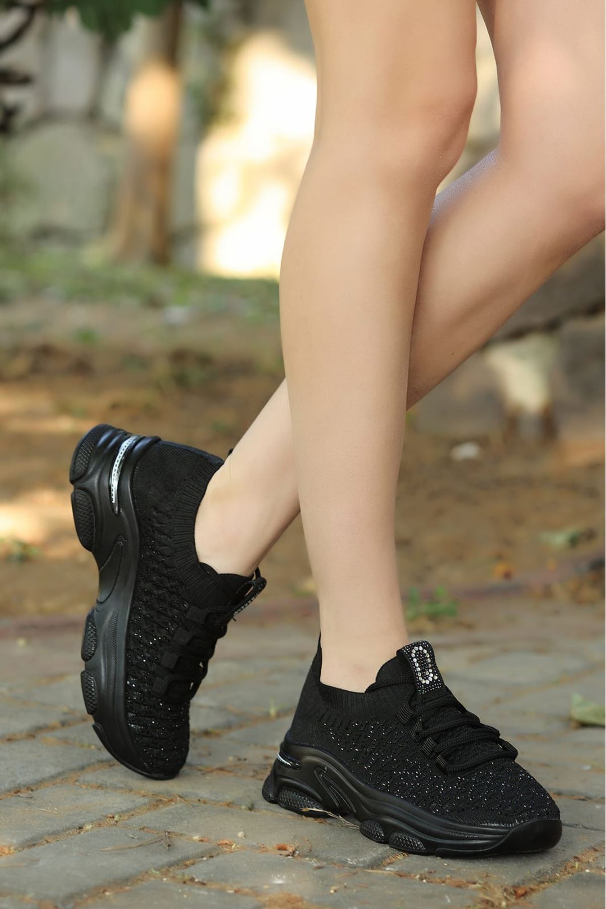 Siesta Siyah Taş Detaylı Triko Spor Ayakkabı