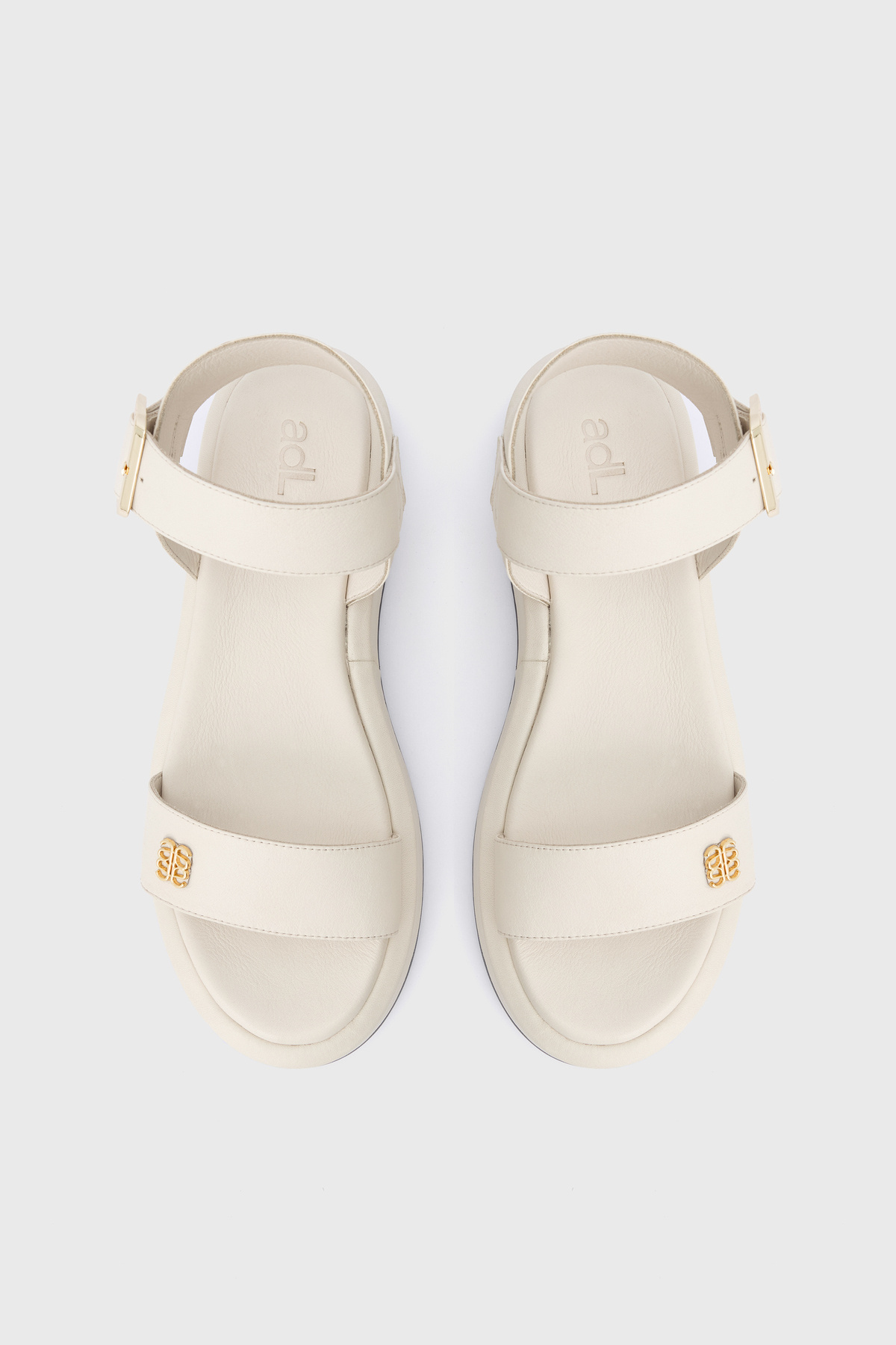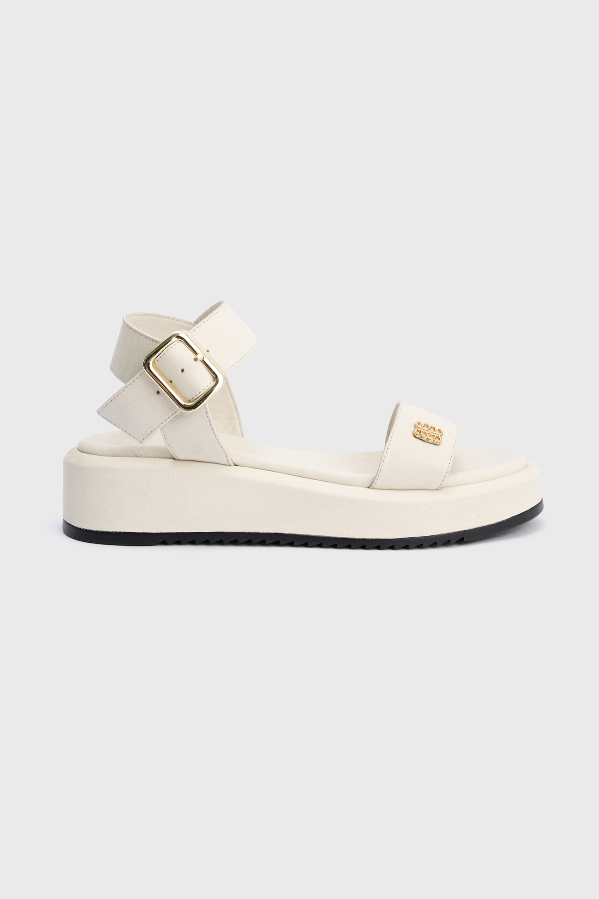 Deri Geniş Bantlı Logolu Sandalet