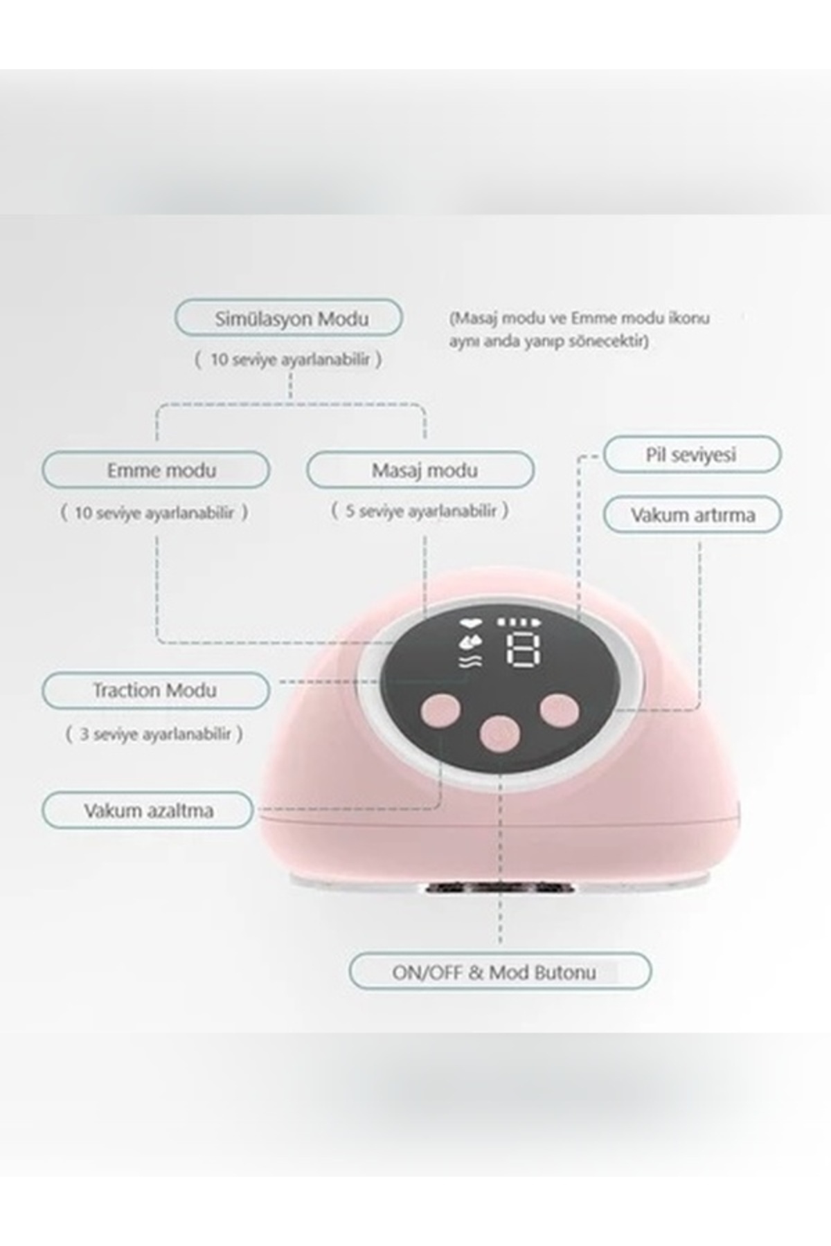 Ayarlanabilir Vakum Seviyeleri: Pompa, farklı meme hassasiyetlerine uygun şekilde ayarlanabilen vakum seviyelerine sahiptir.