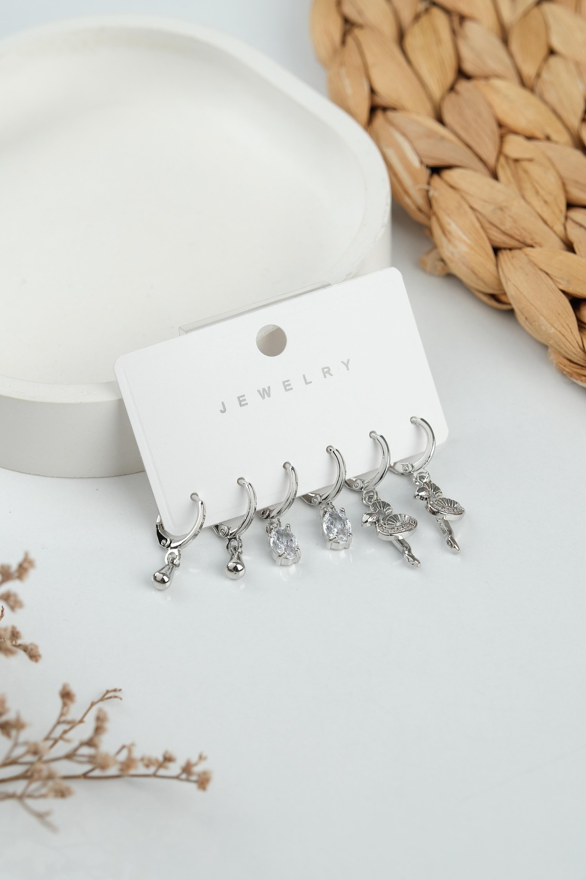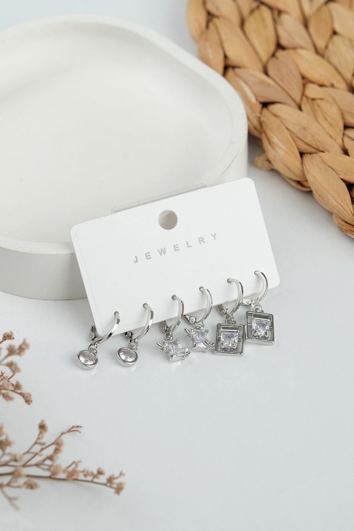 GÜMÜŞ KADIN ÇELİK 6'LI KÜPE SETİ