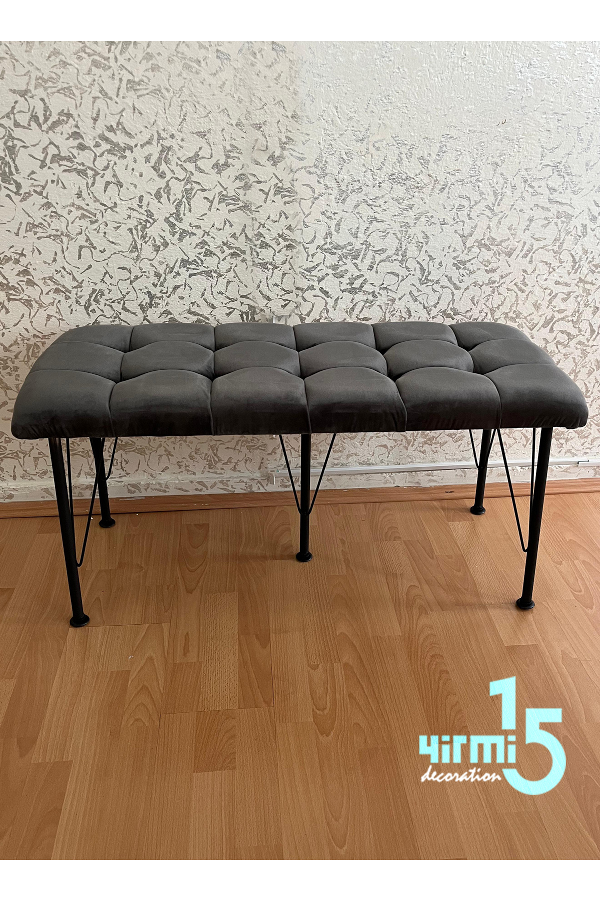 Metal Ayaklı Modern Gold Döşeme Siyah Bench Siyah Puf