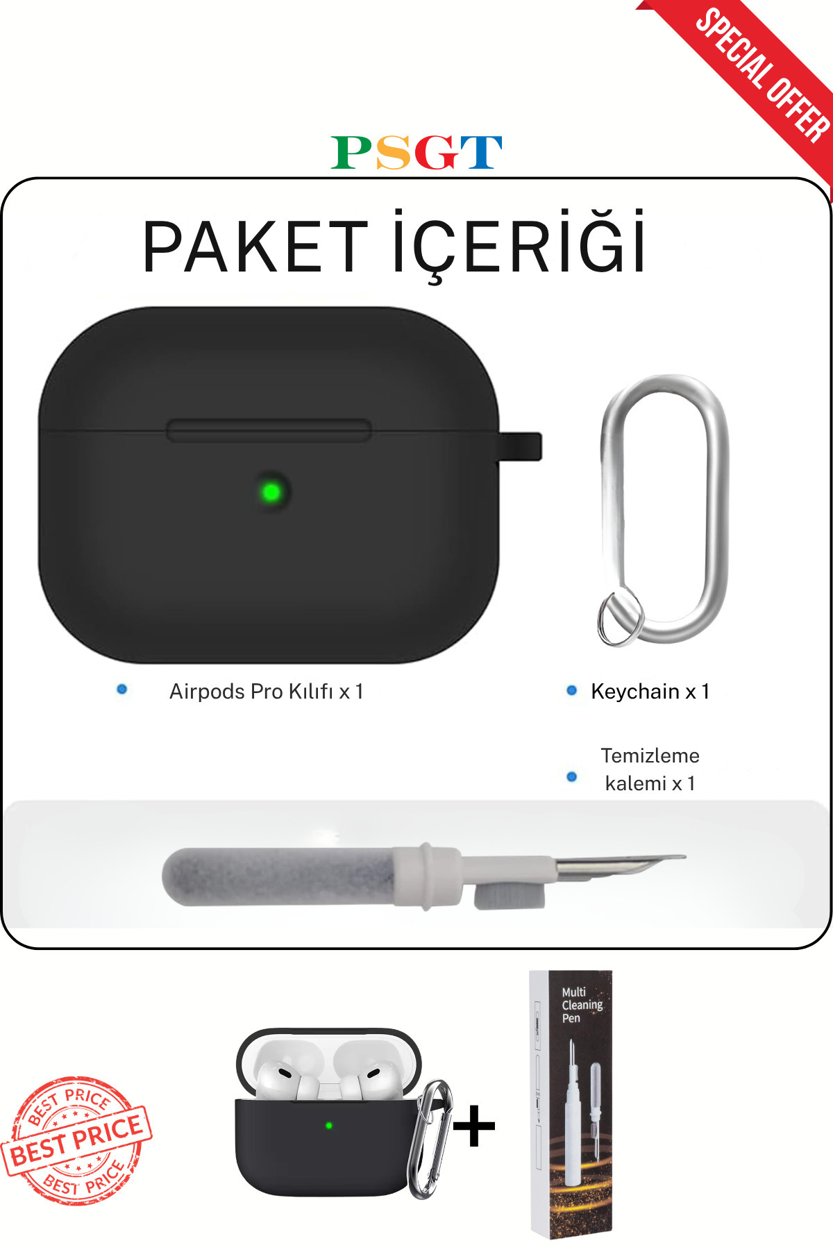 Apple AirPods Pro/pro2 Kılıf Kapak Temizleme Kalemi ile Tam Koruyucu Silikon Kılıf , Ön LED Görünür