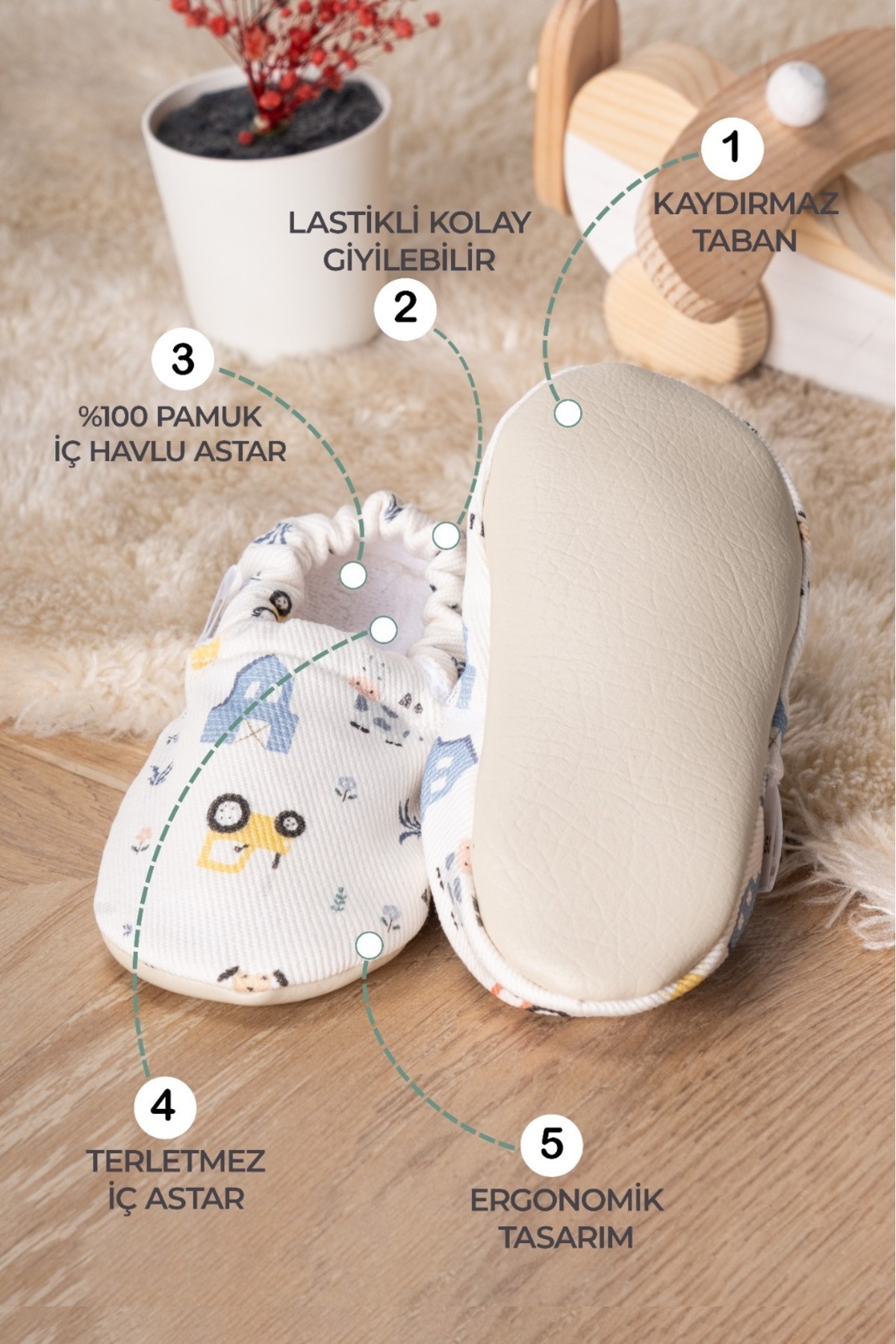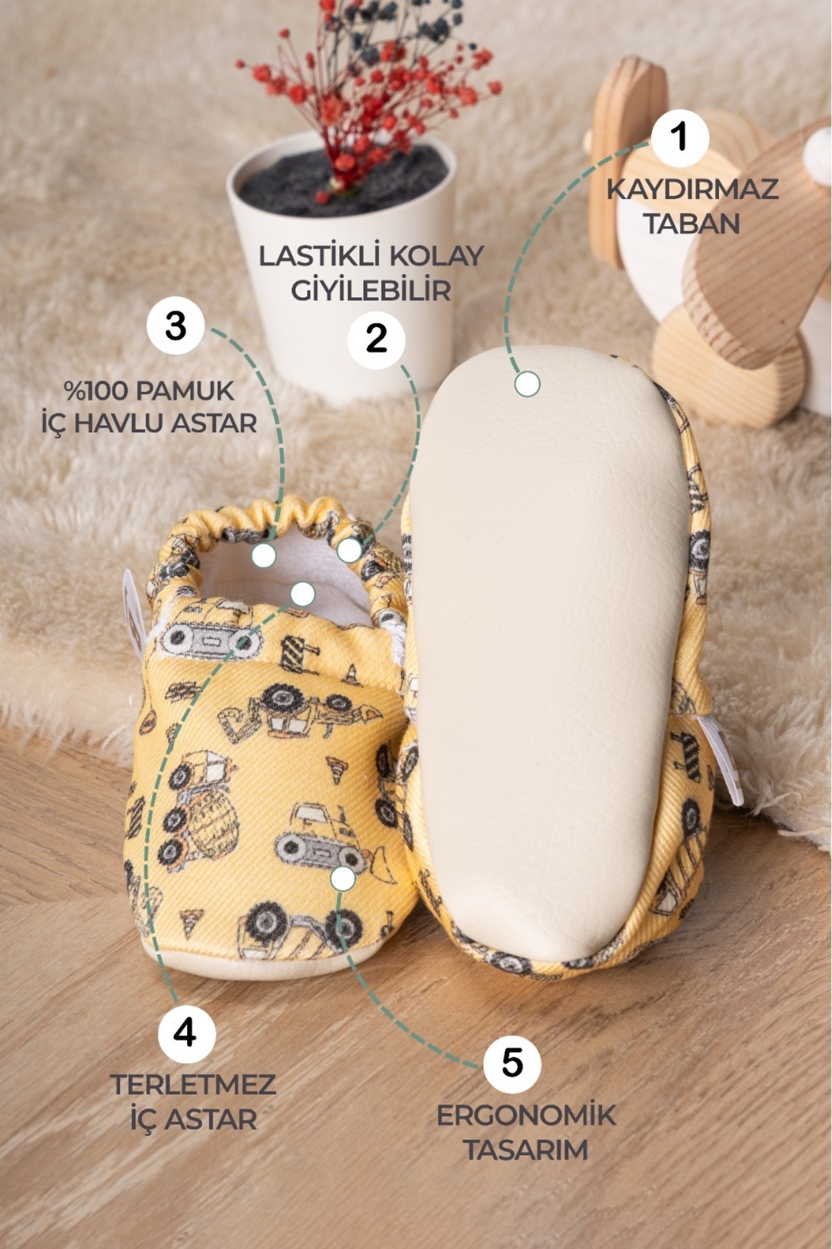 - Menşei Türkiye'den gelen bu bebek patiği, kalite standartlarına uygun olarak üretilmiştir
