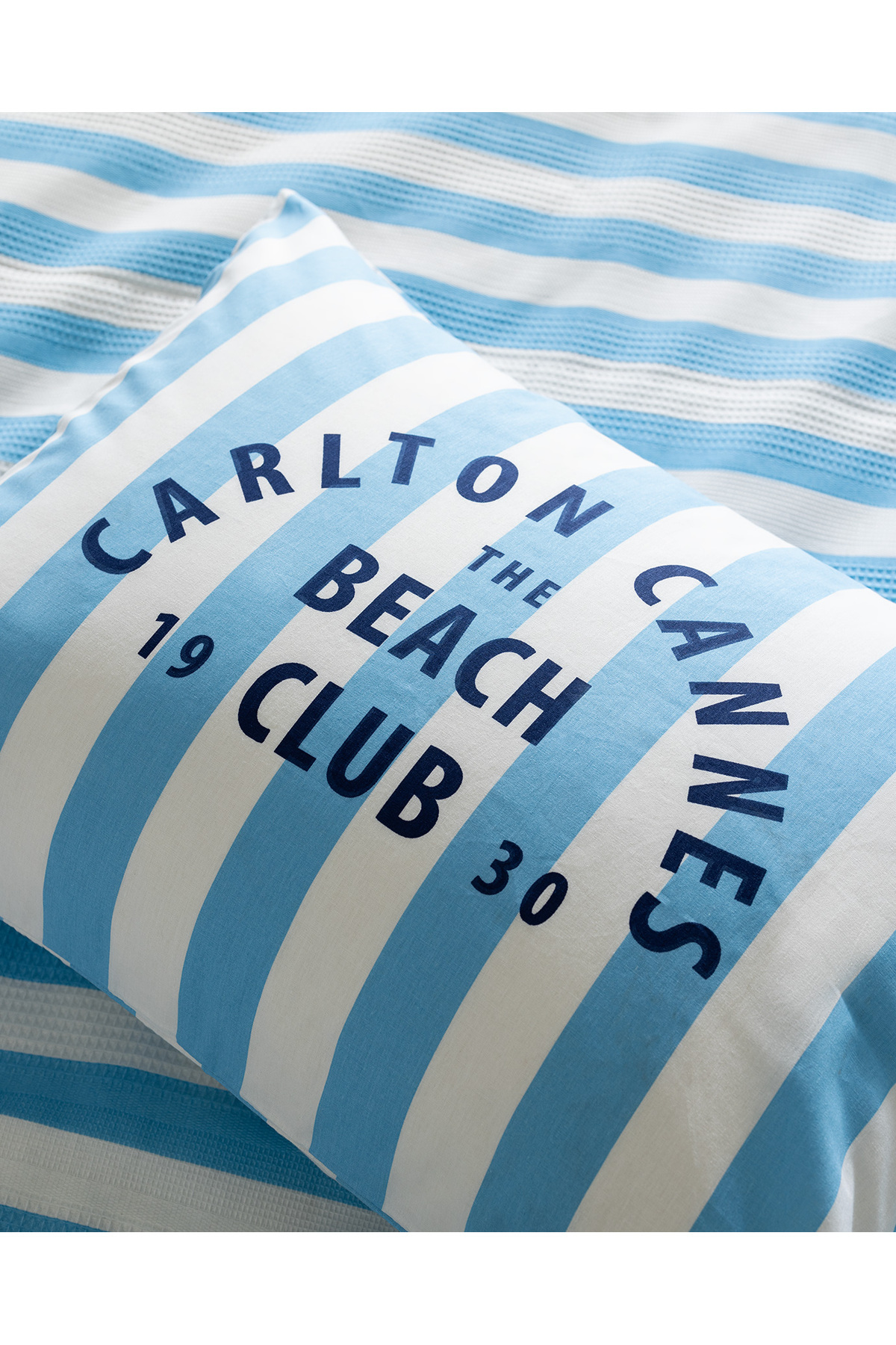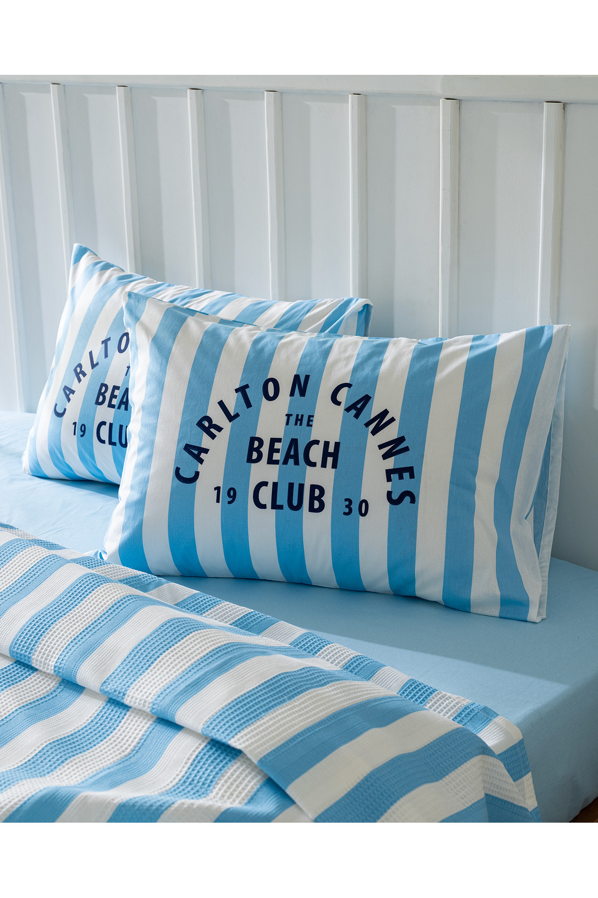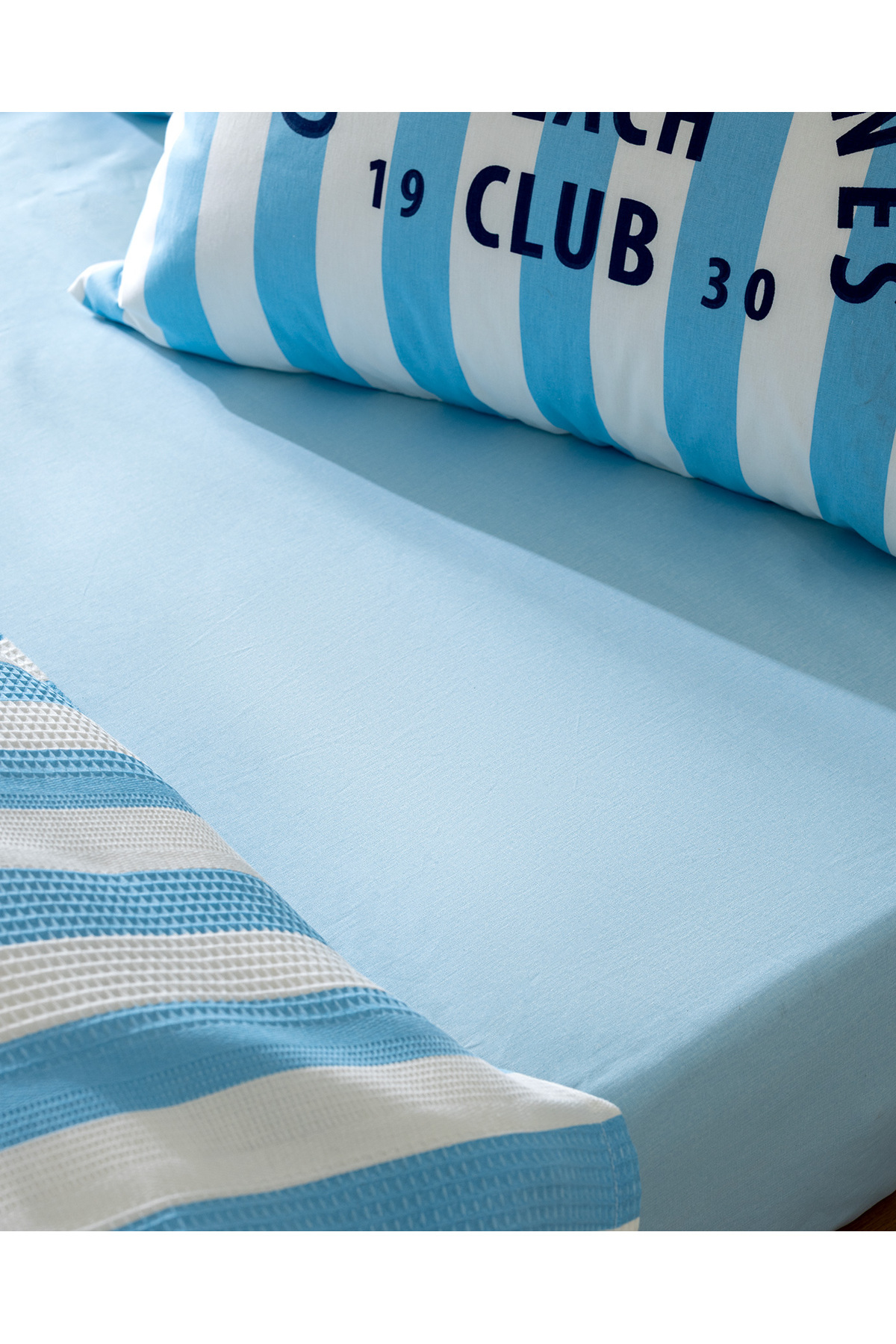 Coralie Tek Kişilik %100 Pamuk Karde Baskılı Pike Takımı - Mavi