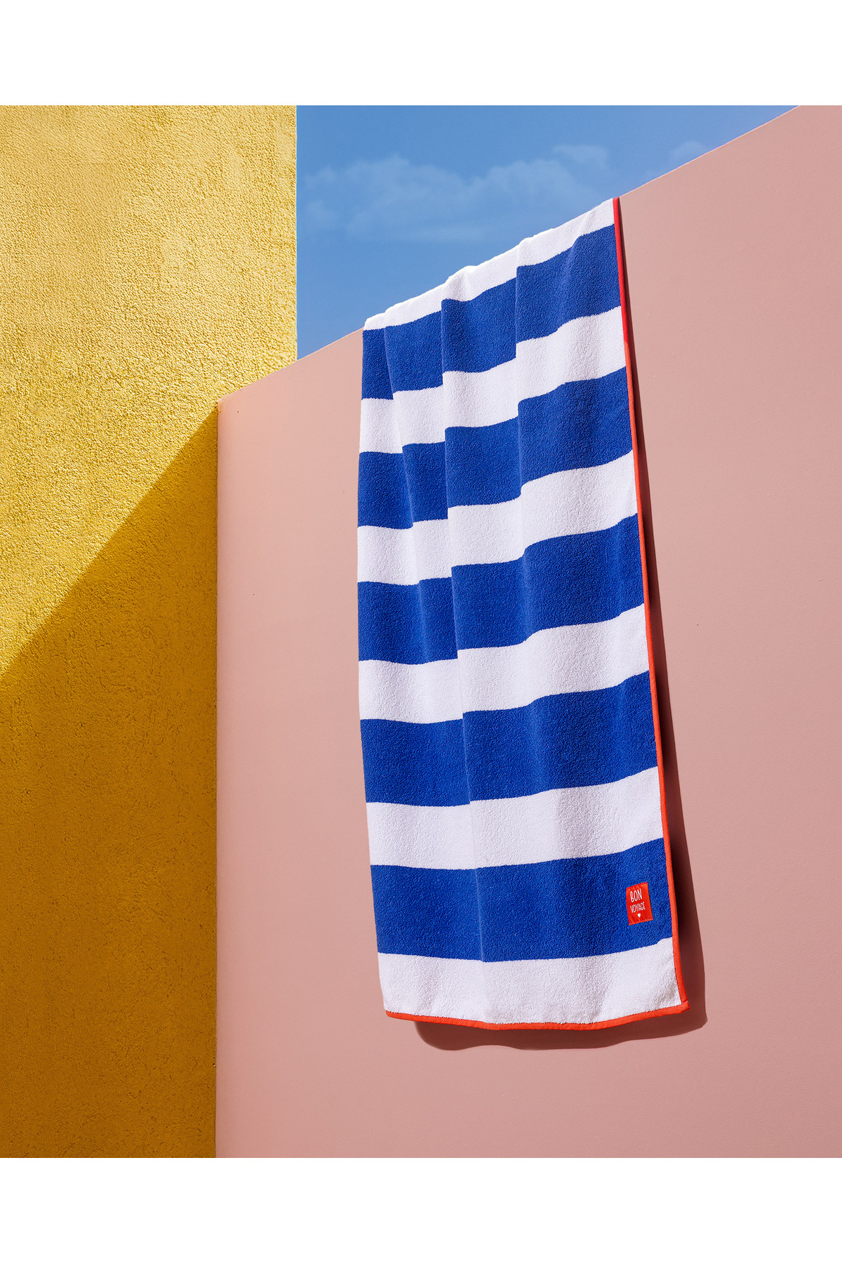 Biasse %100 Pamuk Plaj Havlusu - Beyaz/Mavi - 70x150 cm