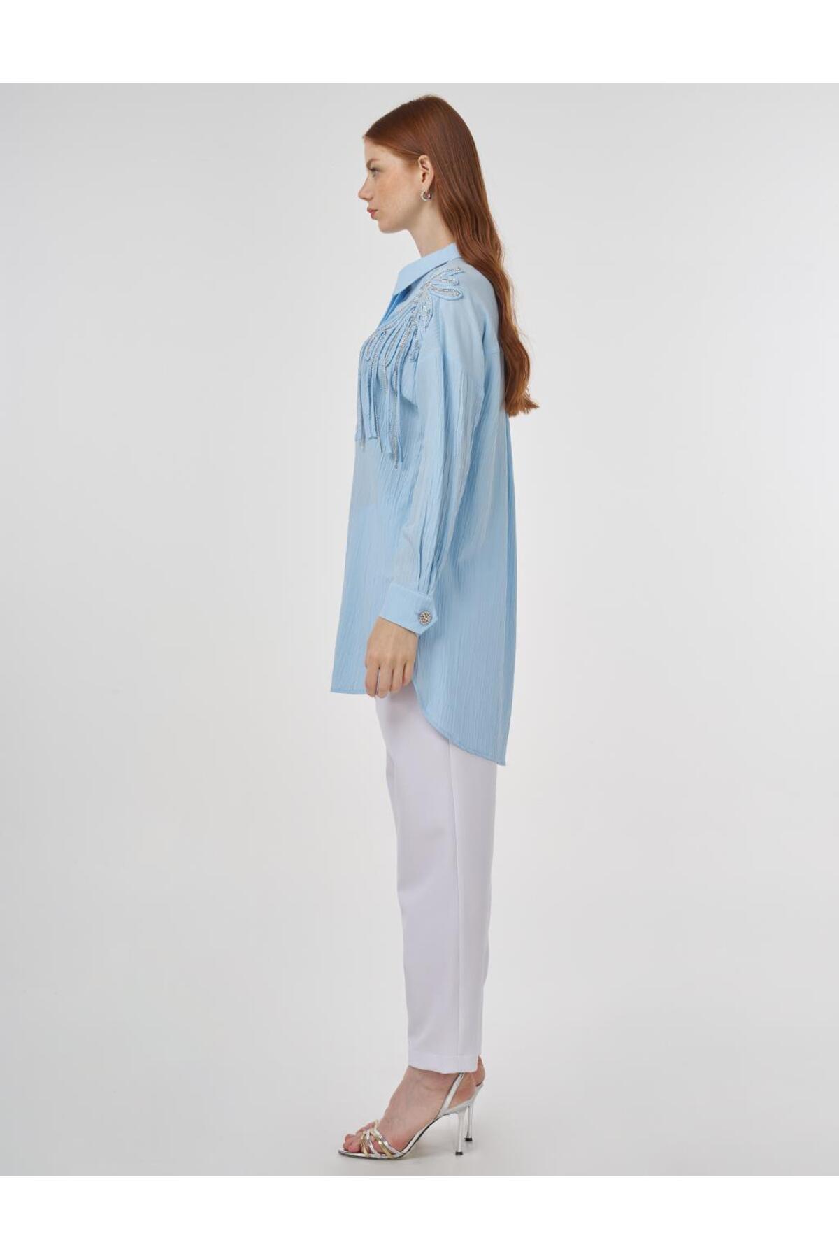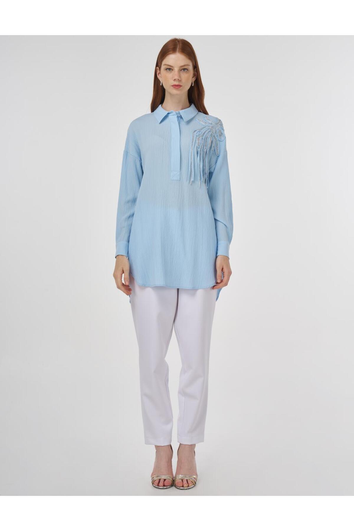 Kapak Cepli Viskon Tunik Buz Mavisi