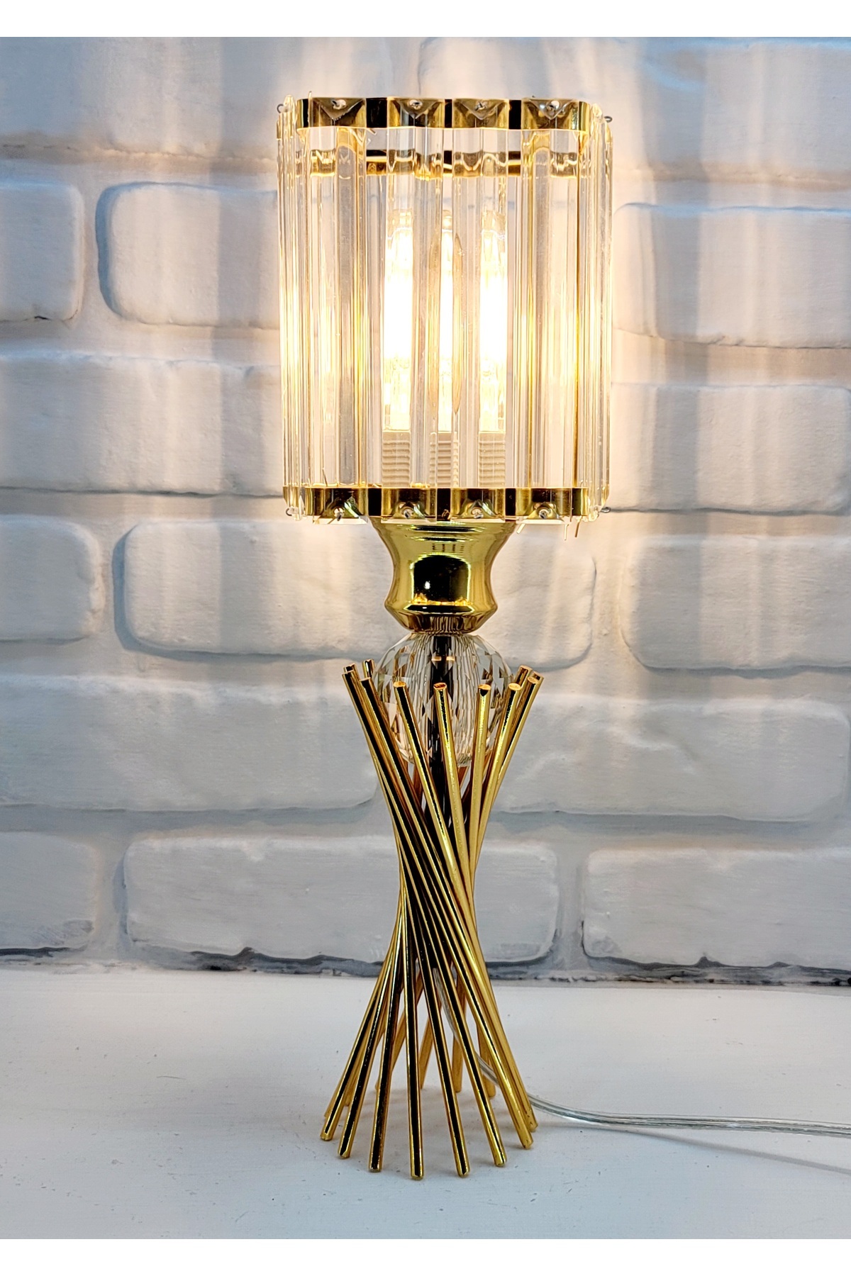 Modern Dekoratif Gold Metal Burgu Kristal Taşlı Kristal Dairesel / Kare Şapkalı Abajur Masa Lambası