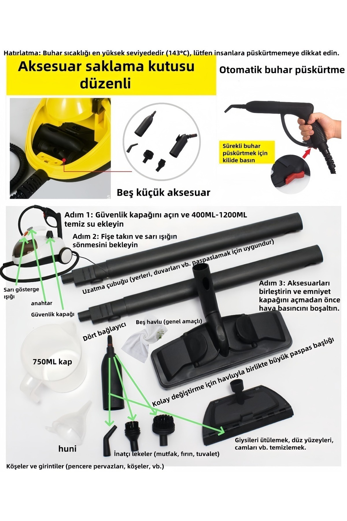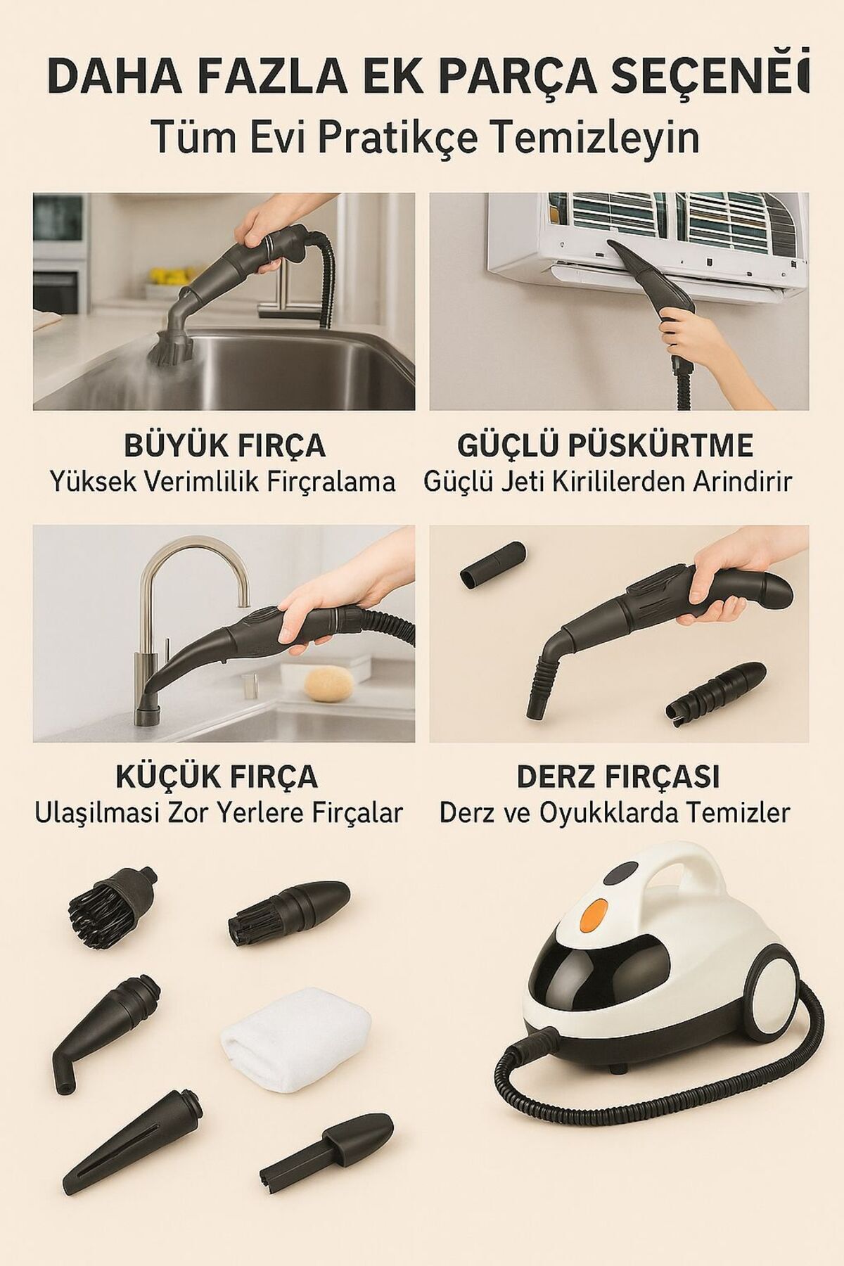 Çok Fonksiyonlu Buharlı Temizlik Makinası Dezenfeksiyon, Paspaslama, Ütüleme, Pencere Temizliği